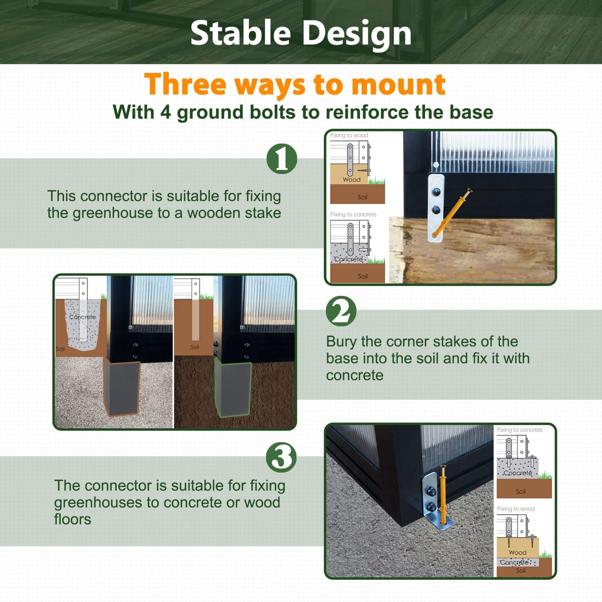 • Its double-wall polycarbonate panels ensure optimal light transmittance for healthy growth while providing essential UV protection.