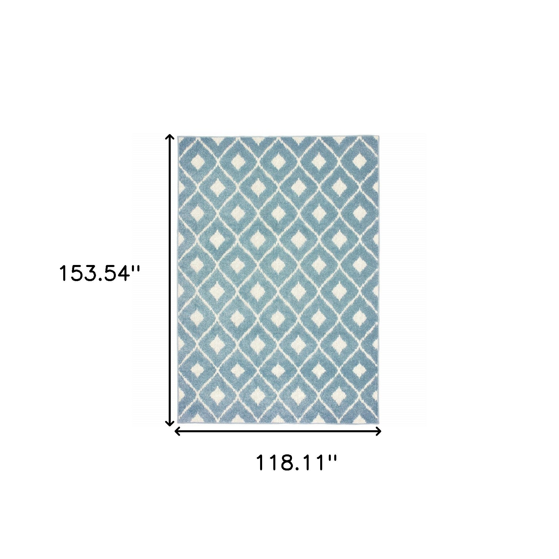 10' x 13' Blue and Ivory Geometric Stain Resistant Indoor Outdoor Area Rug