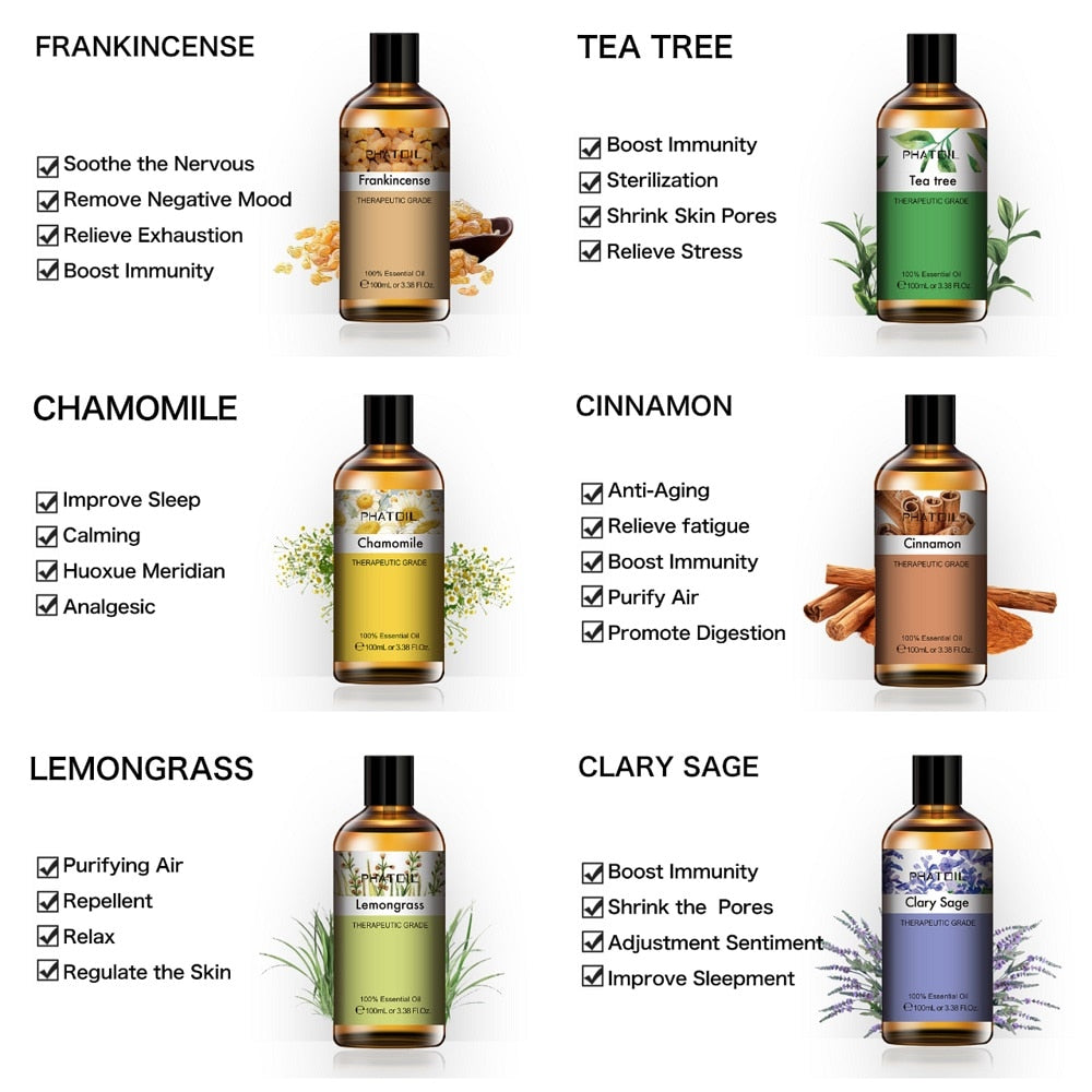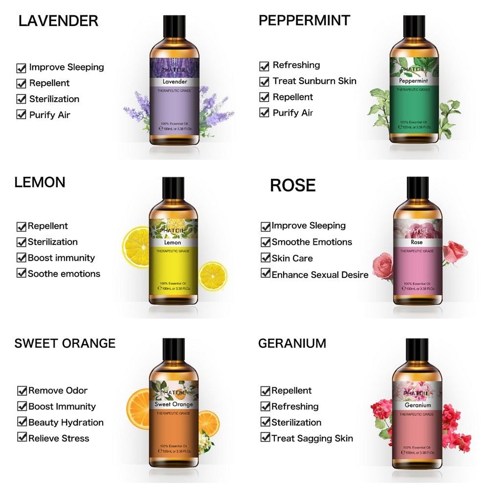 1.100ml Pure Plant Extract Essential Aromatherapy Oils.