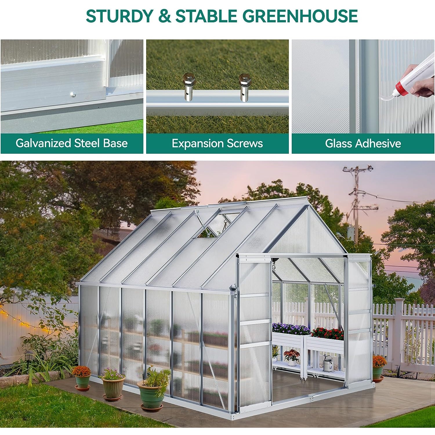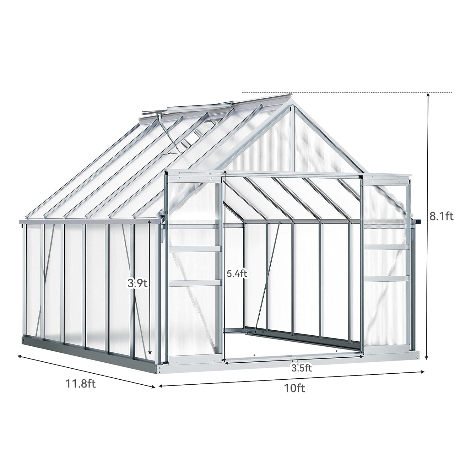 [10x12FT] Extra Large Heavy Duty Polycarbonate Aluminum Greenhouse With Sliding Doors And Vents (92574183)