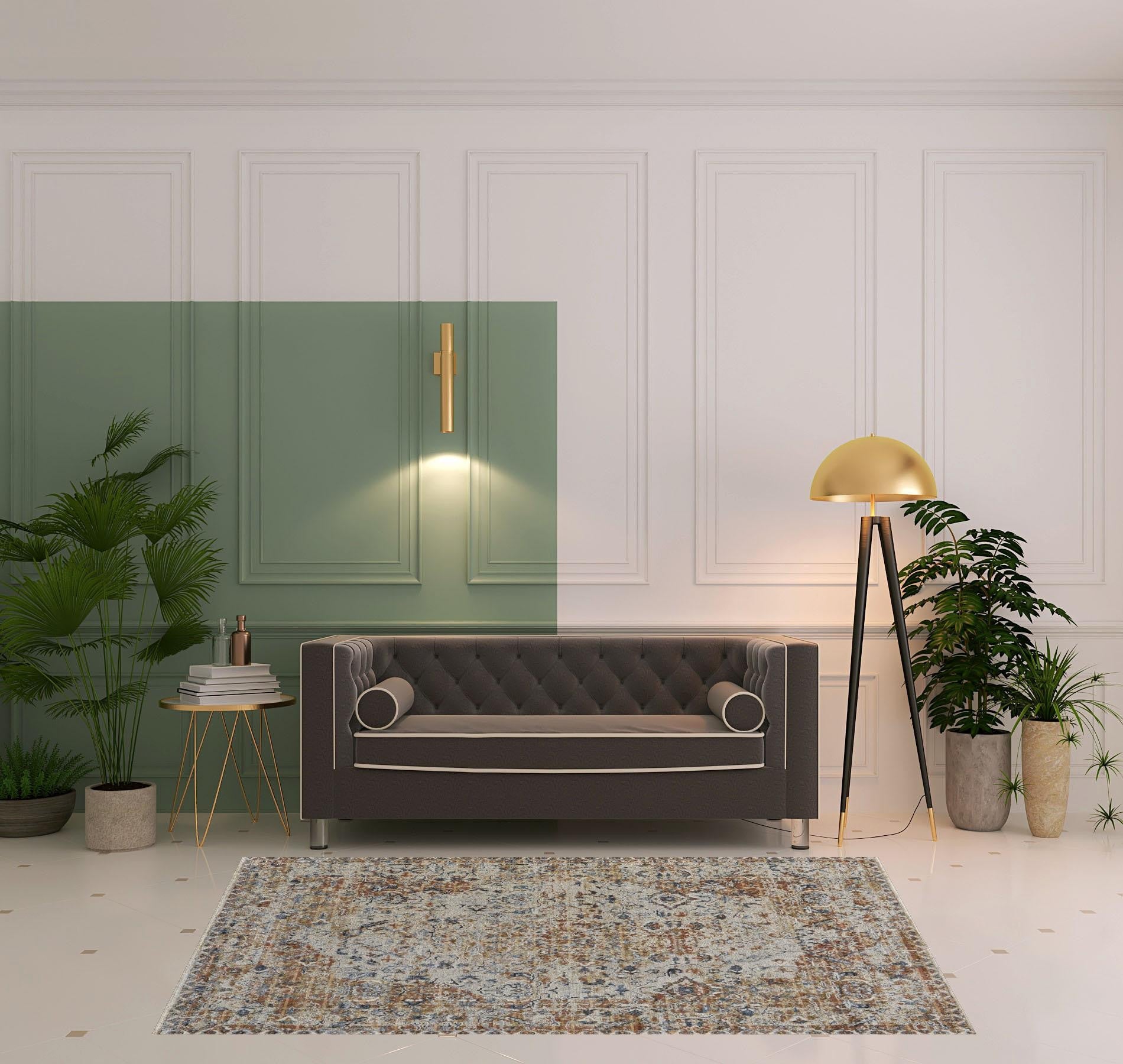 Set an inviting tone in your space with this 12' x 15' tan ivory and orange floral power loom area rug with fringe. This rectangle shaped rug features a floral design in tan ivory and orange to give it visual interest. A classic shape marries with good looking design for your space This superior Turkish rug represents the highest quality and is built to last. Tassel ends bring a timeless and fashionable look to your interior. Place this area rug against a hardwood or tile floor and it will enliven your living space with style and sophistication. 0.39" H x 144" W x 180" D