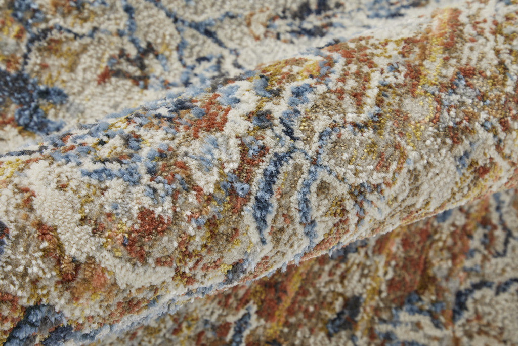 12' X 15' Tan Ivory And Orange Floral Power Loom Area Rug With Fringe