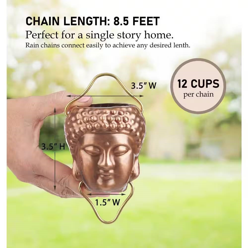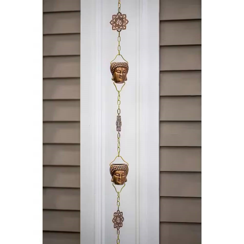 8.5 ft. Buddha Head Cups and Ohm Ornaments Copper Rain Chain Gutter Downspout