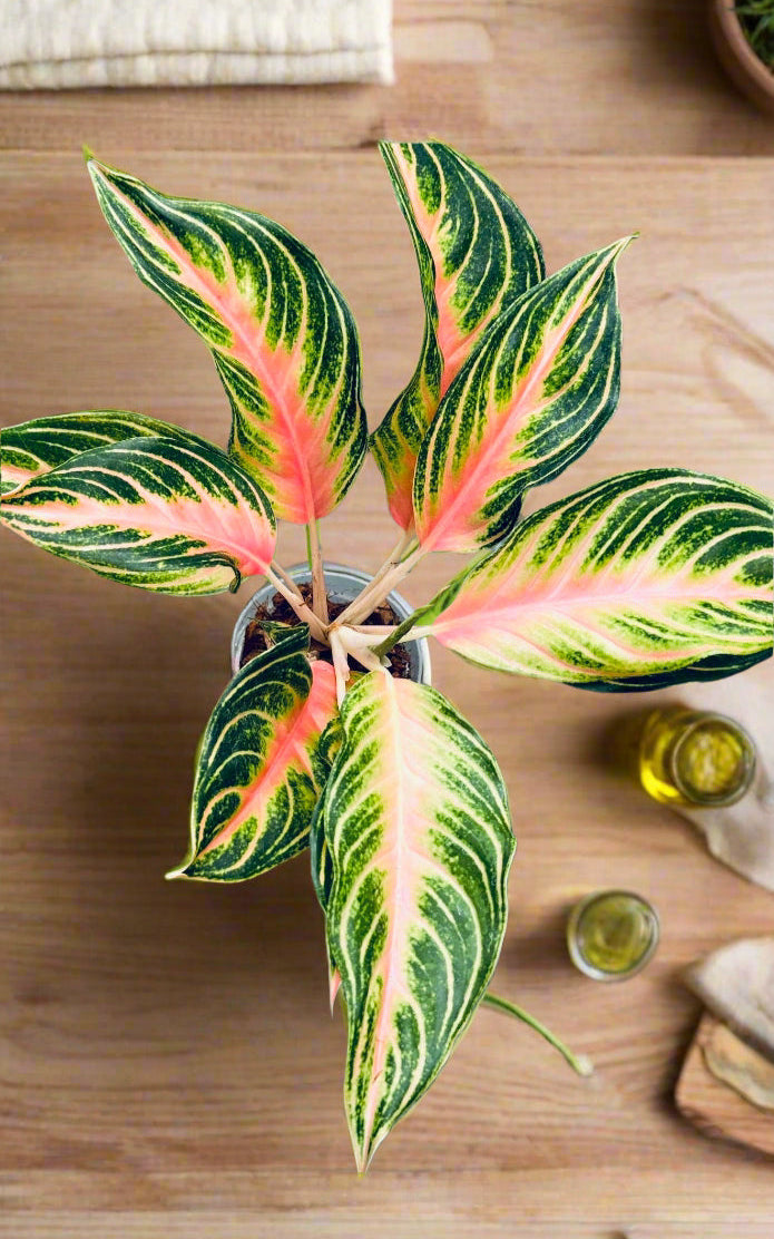 Care for this easy-care plant is straightforward: Aglaonema Pink Sunset thrives in medium to low light and appreciates a well-draining soil mix. Water when the top inch of soil feels dry, and provide trace amounts of fertilizer with each watering for optimal growth.