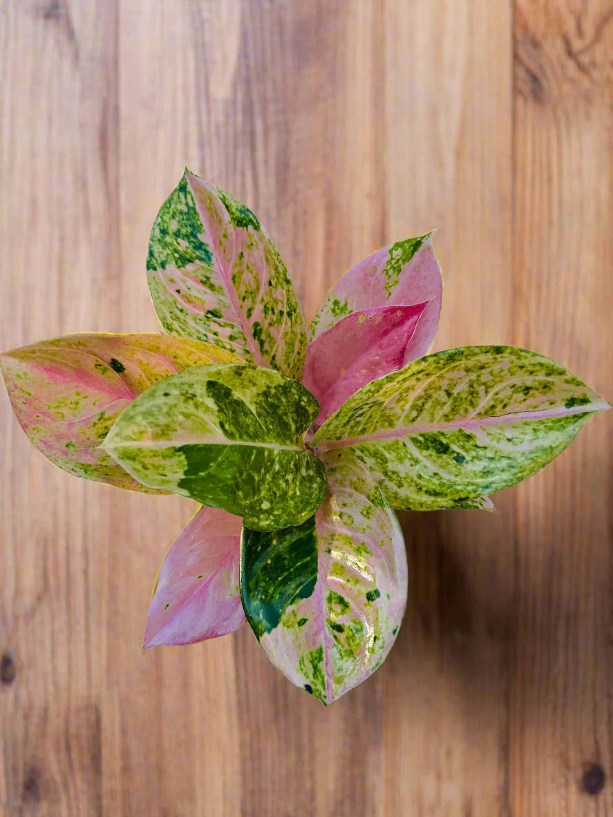 The Aglaonema Prakaiphet is for sale at Plant Vault, a rare tropical plant known for its vibrant pink and green foliage. This rare houseplant, scientifically classified an Aglaonema sp., features broad, glossy leaves with a striking combination of deep green and pink tones. The pink variegation appears in delicate streaks and spots, adding a beautiful contrast against the rich green base. As the plant matures, the pink accents become more pronounced, making it a standout piece in any collection.