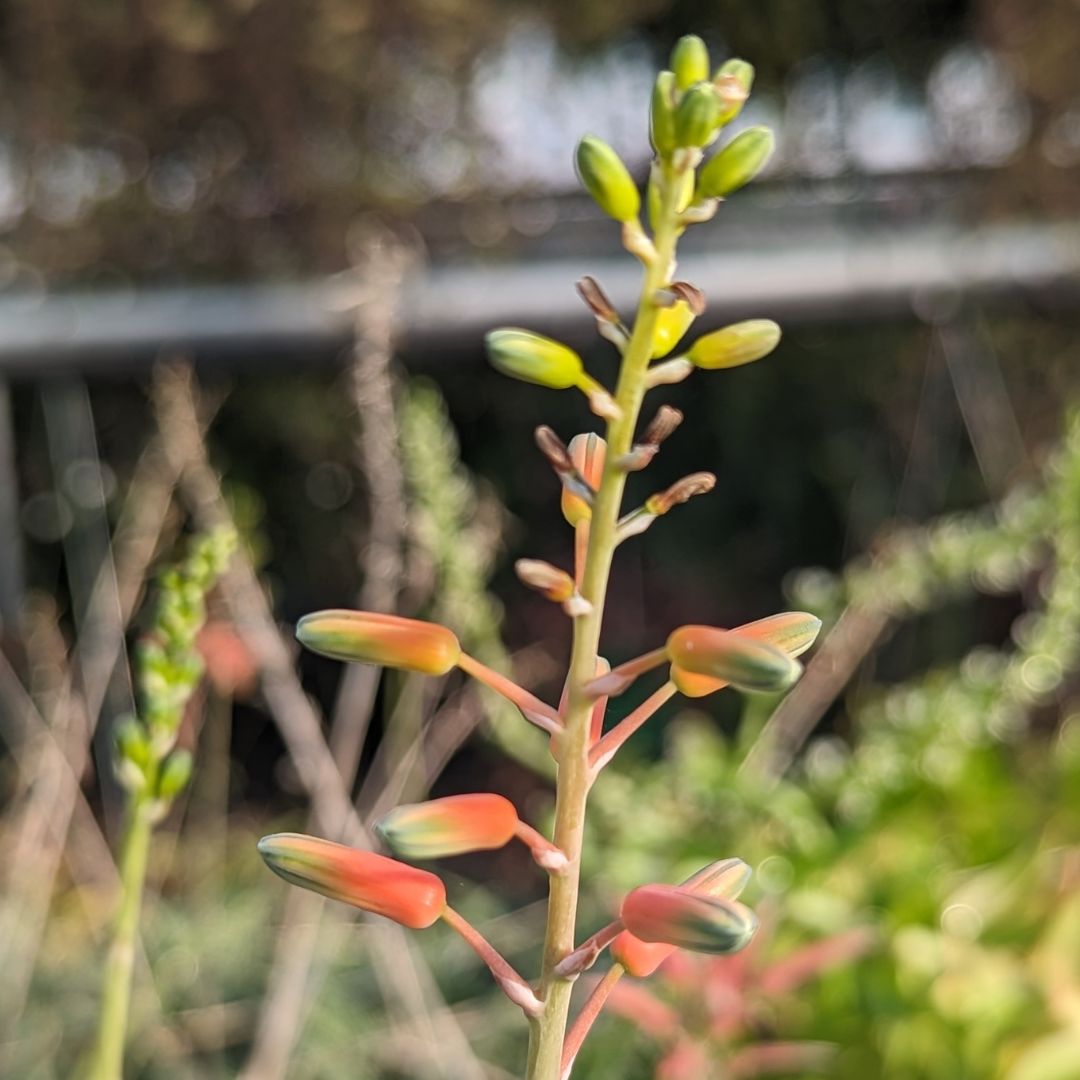 Produces tubular coral-pink to orange flowers on tall stalks during late winter or early spring.