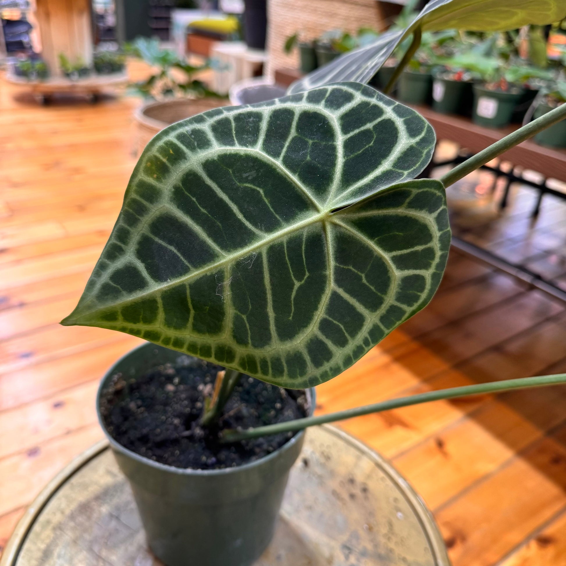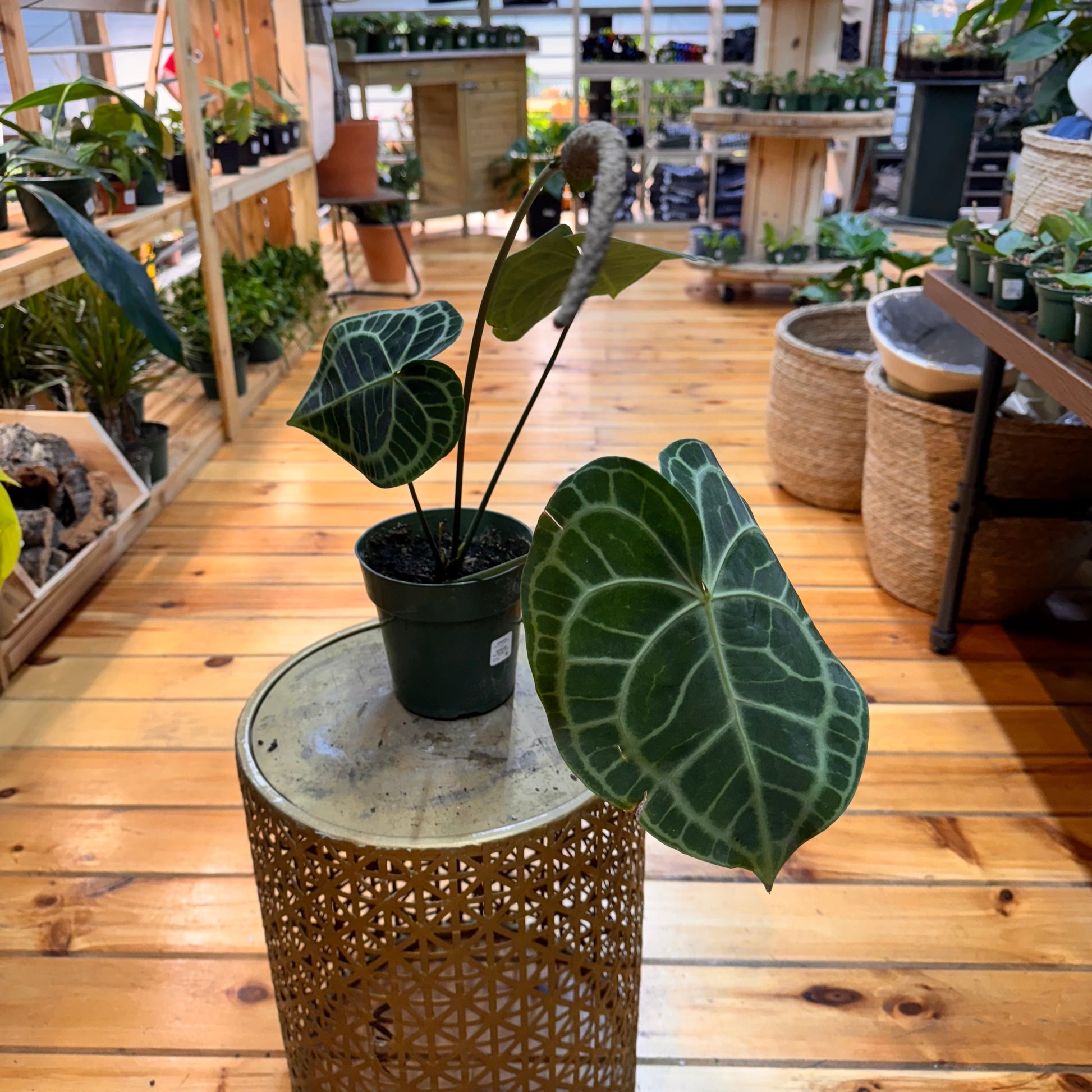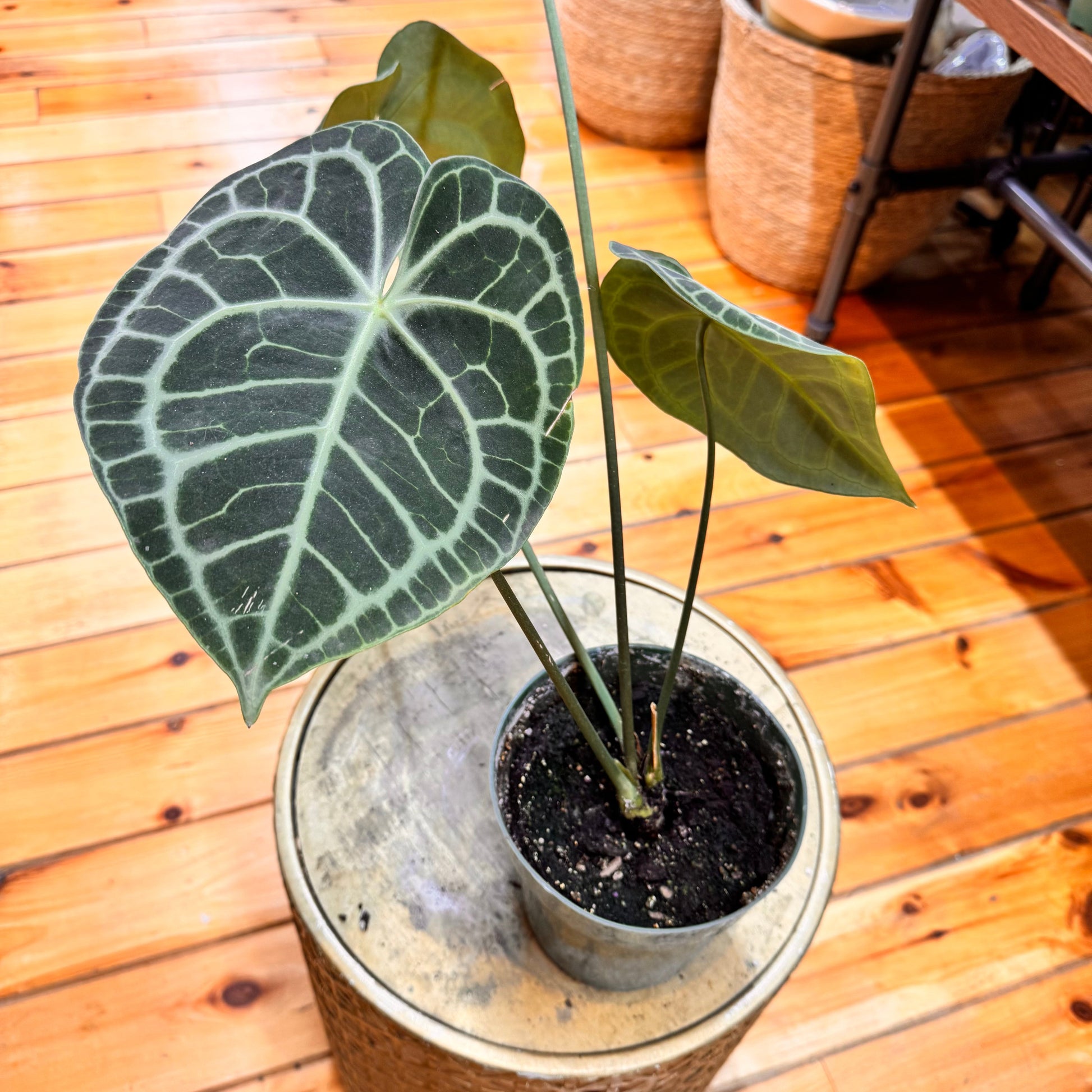 Meet the majestic Anthurium 'Queen of Clarinervium'—a rare and regal hybrid that combines the bold, velvety foliage of Anthurium clarinervium with the elongated elegance of Anthurium warocqueanum. This collector’s dream features heart-shaped, deep green leaves adorned with bright white veins that create a dramatic contrast and royal presence in any plant collection.