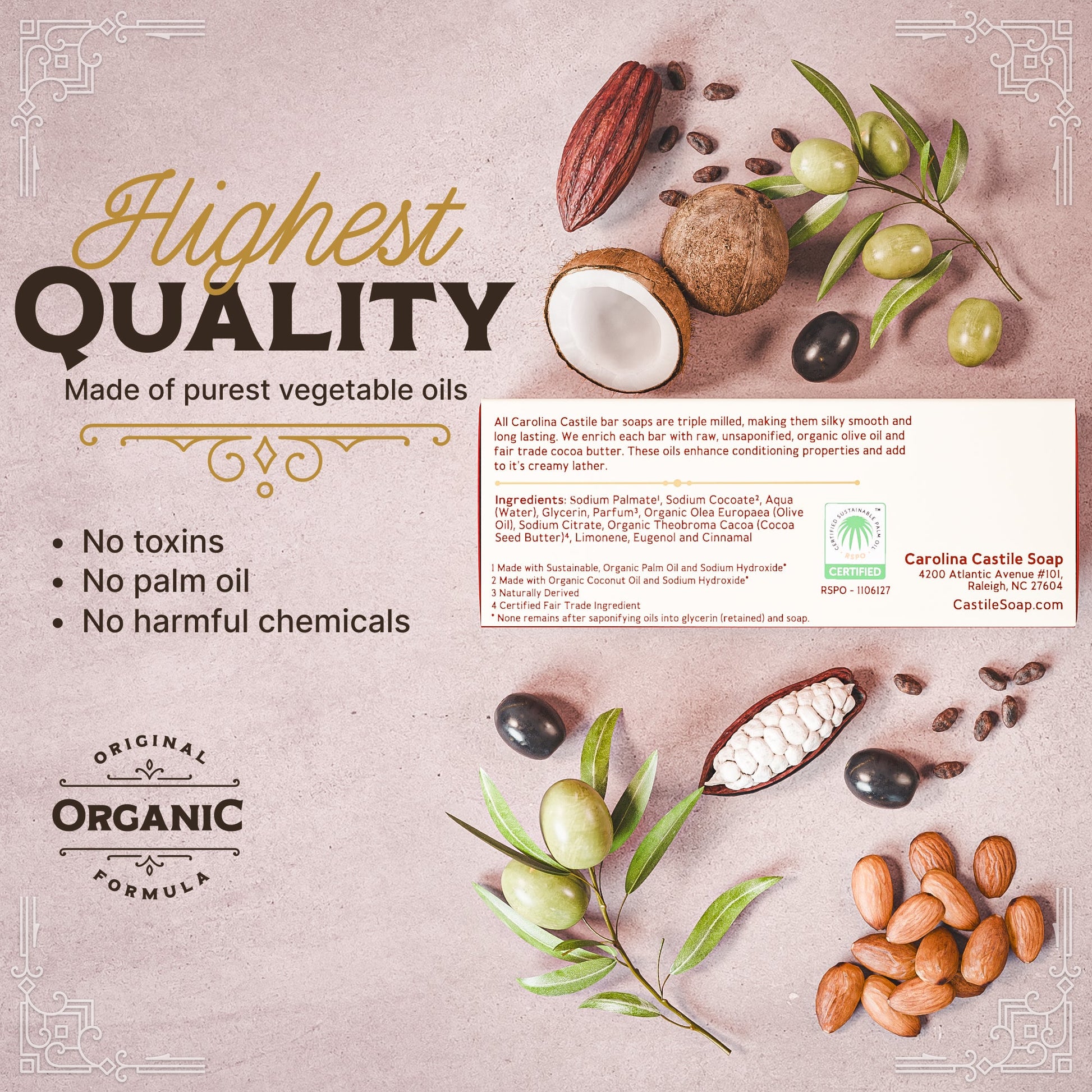 • Go Organic - Treat your skin to the good stuff! Made with organic, responsibly sourced ingredients, your natural bar soap is made with hydrating olive oil, soothing coconut oil, nourishing cocoa butter, and sustainable palm oil.