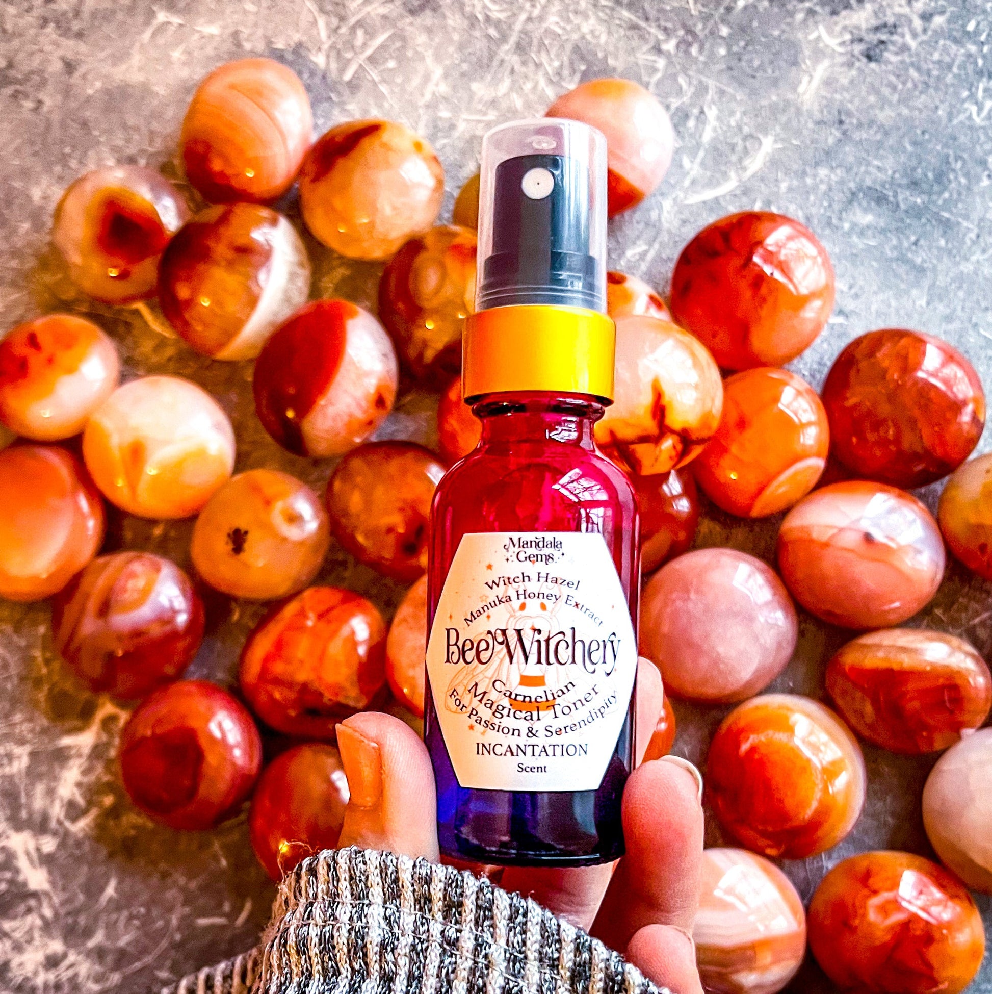 🔥 "Incantation" is more than a toner; it's a potent brew of sultry scents and mystical energies. As you anoint your skin with this aromatic elixir, you're casting a spell of pure confidence and allure. Let the power of Carnelian crystal chips infuse your aura with their fiery energy, awakening your inner sorceress.