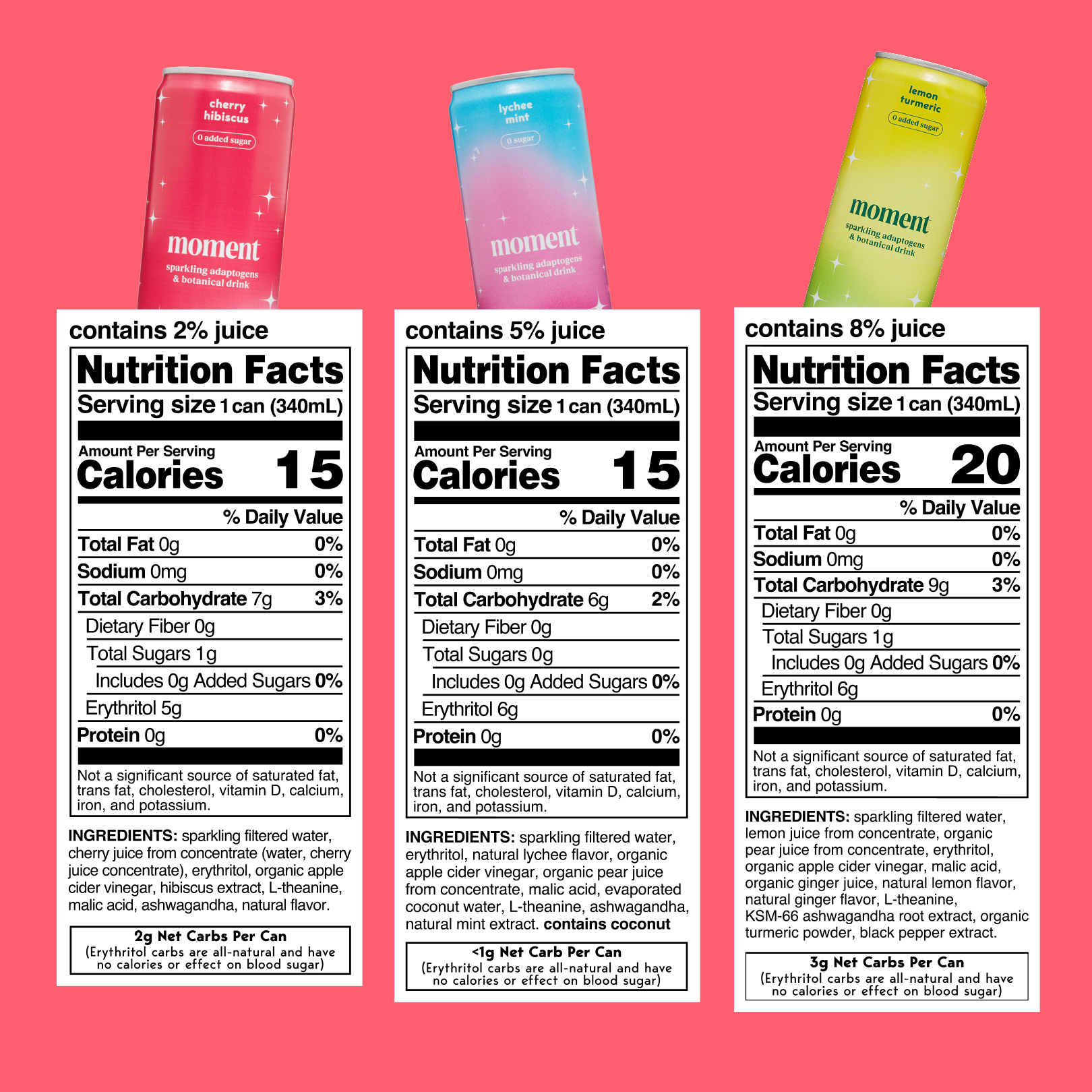 Discover your perfect moment with our thoughtfully curated variety pack. Each can combines premium ingredients with powerful botanicals to help you find balance throughout your day. From bright citrus to sweet berries, exotic fruits to calming herbs, every sip offers a new way to pause and reset.