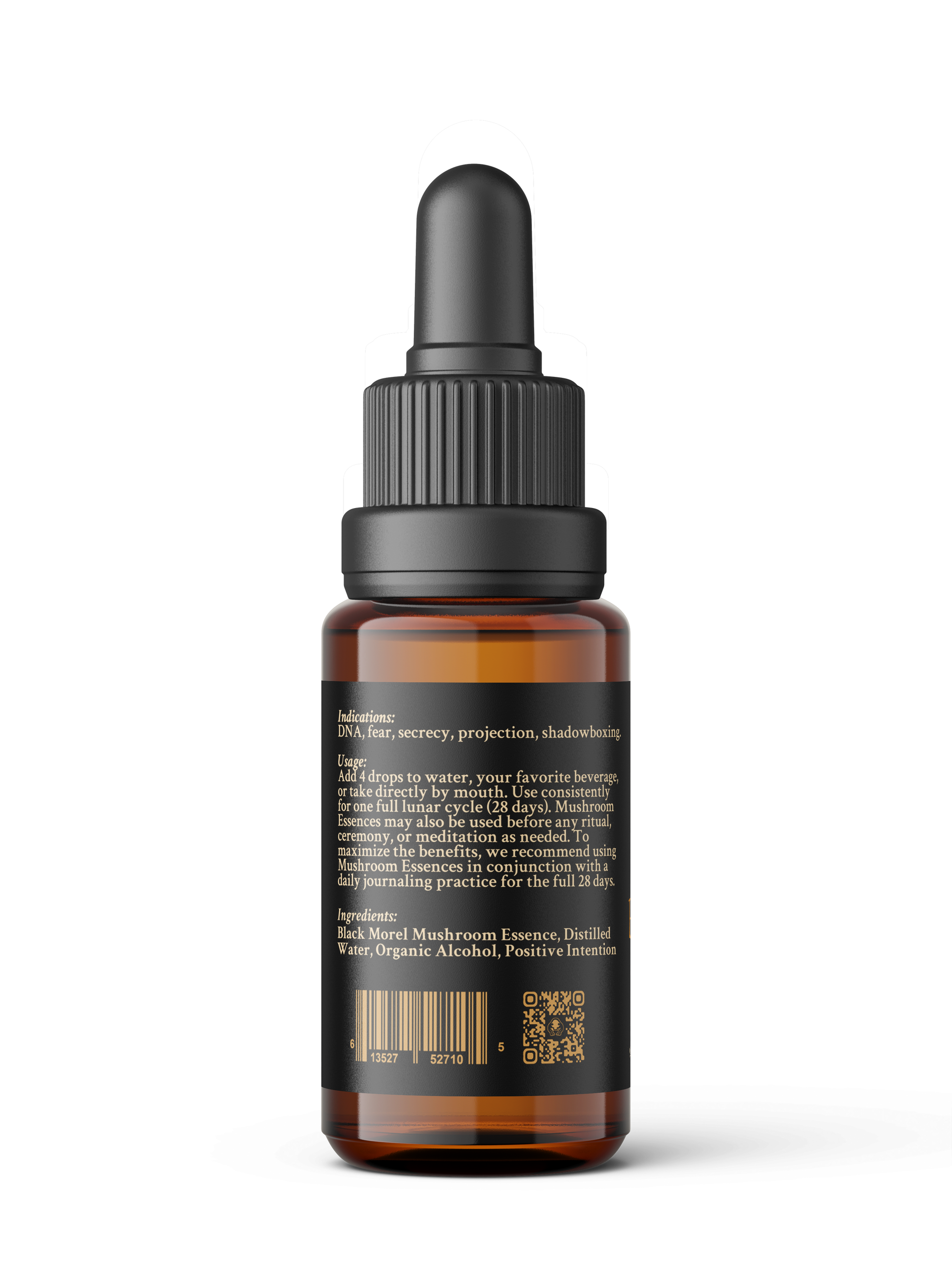Black Morel Mushroom Essence (Morchella snyderi) is indicated for: DNA, fear, secrecy, projection, and shadowboxing.