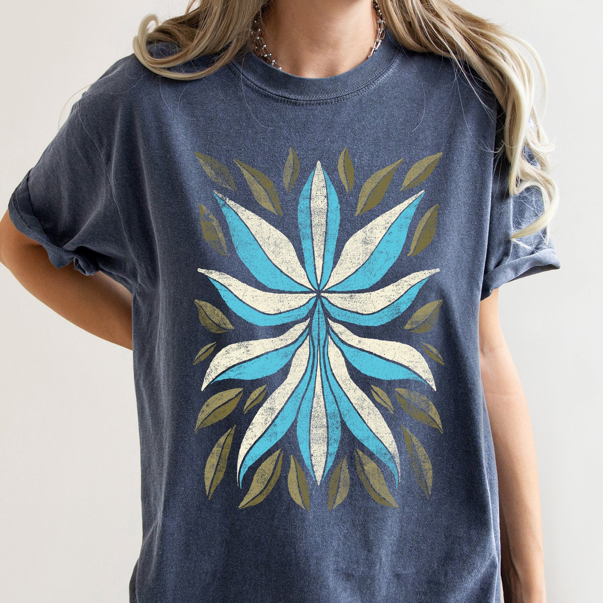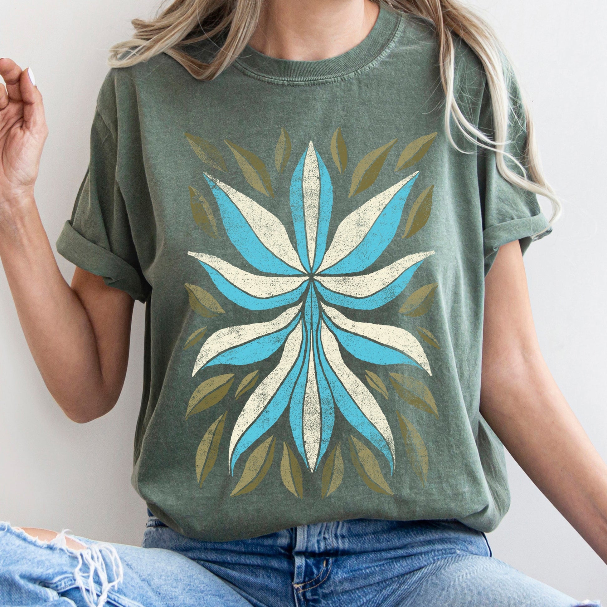 Boho Folk Art Flower and Leaves Comfort Colors Tshirt