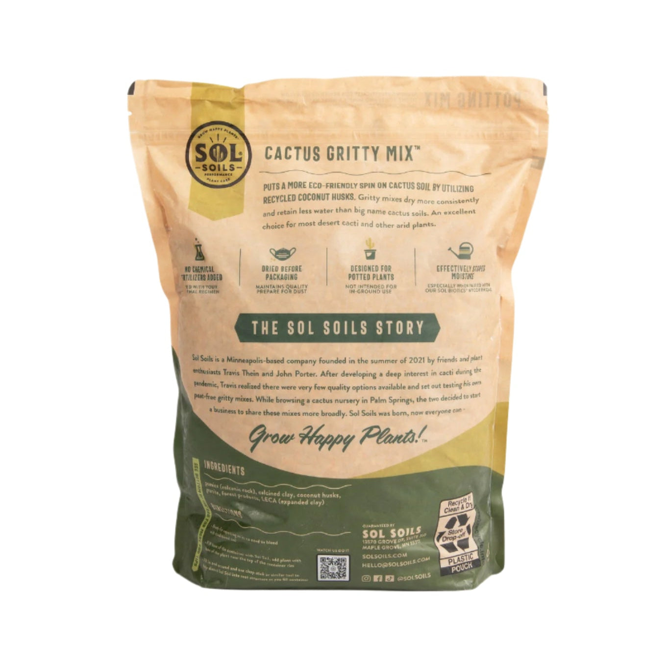 Cactus Gritty Mix is the mix that started it all! This puts a more eco-friendly spin on the traditional gritty cactus soil by utilizing coconut chips and coir, an otherwise wasted byproduct of the coconut industry. Great for any desert dwelling plant, including many species of Euphorbia. Of the 50 million coconuts produced around the world each year, about 85% of the husks are discarded as trash. As a soil component, the ground husks offer excellent aeration and moisture retention properties while still providing a fast-draining medium. Cactus Gritty Mix is the perfect choice for a wide variety of cacti and other hardy, dry-weather plants.