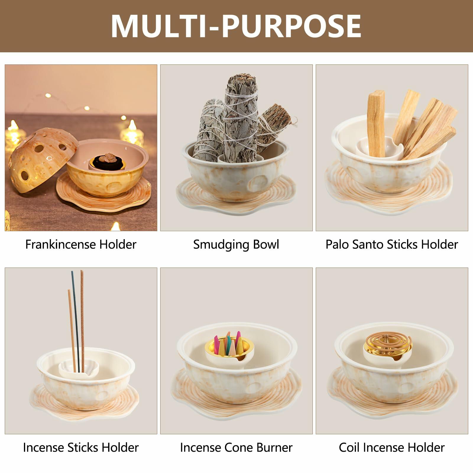 Ceramic Moon Incense Holder Burner 12-in-1 Multi-use Home Decor
