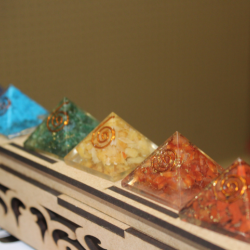 Orgonite pyramid helps to filter and balance energy. Crystal pyramids are excellent for grids, mediation, readings, and reiki healing. Each pyramid comes with its specific crystal for chakra healing and balancing. The pyramids convert low frequency energy into higher frequency that is more beneficial for living beings like yourself, your pets and your plants. Purify your environment, your home or work space from negative energy with our orgone pyramid set