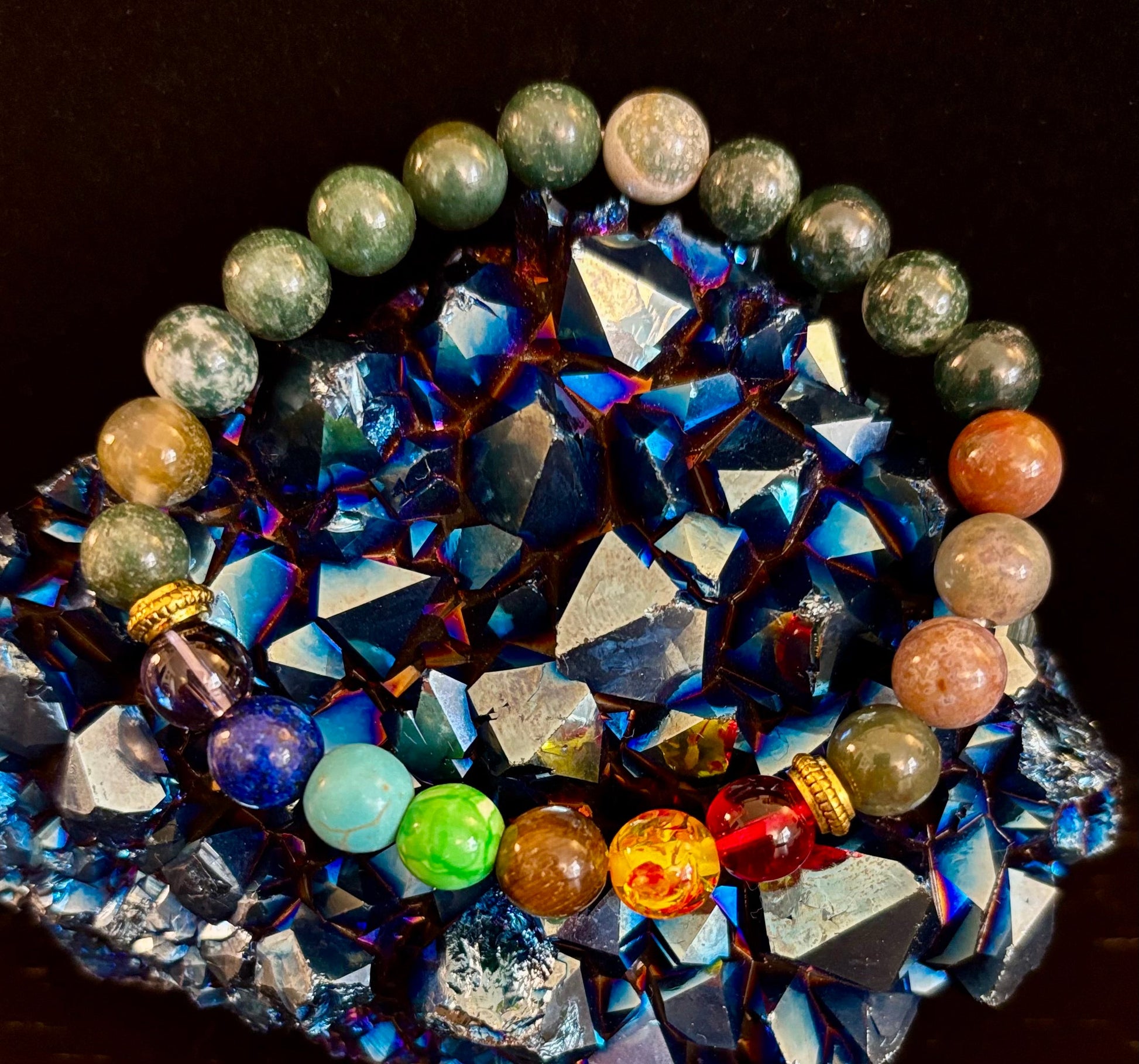 Align your energy and stay grounded with our Chakra Balance & Grounding Energy Bracelet, handcrafted with vibrant 8mm chakra stones and deep, earthy India Onyx. Each of the seven colorful gemstones corresponds to one of the body’s chakras, promoting emotional healing, clarity, and spiritual harmony—while India Onyx offers powerful grounding, protection, and inner strength.