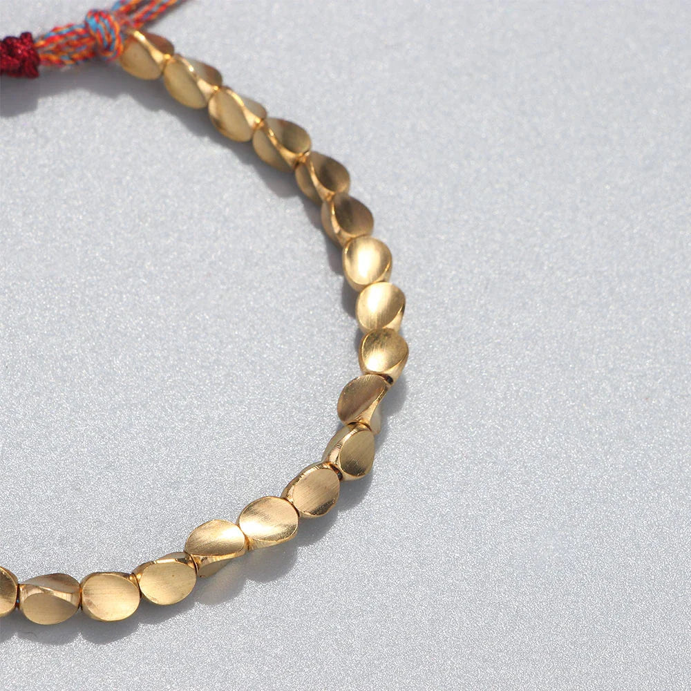 This Tibetan copper beaded bracelet brings the harmonic connection between the physical and astral bodies and aligns the subtle bodies. It can help to clear out negative energy and can rebalance the chakras needed for deep healing. The Tibetan braided strings are believed to bring luck your way.