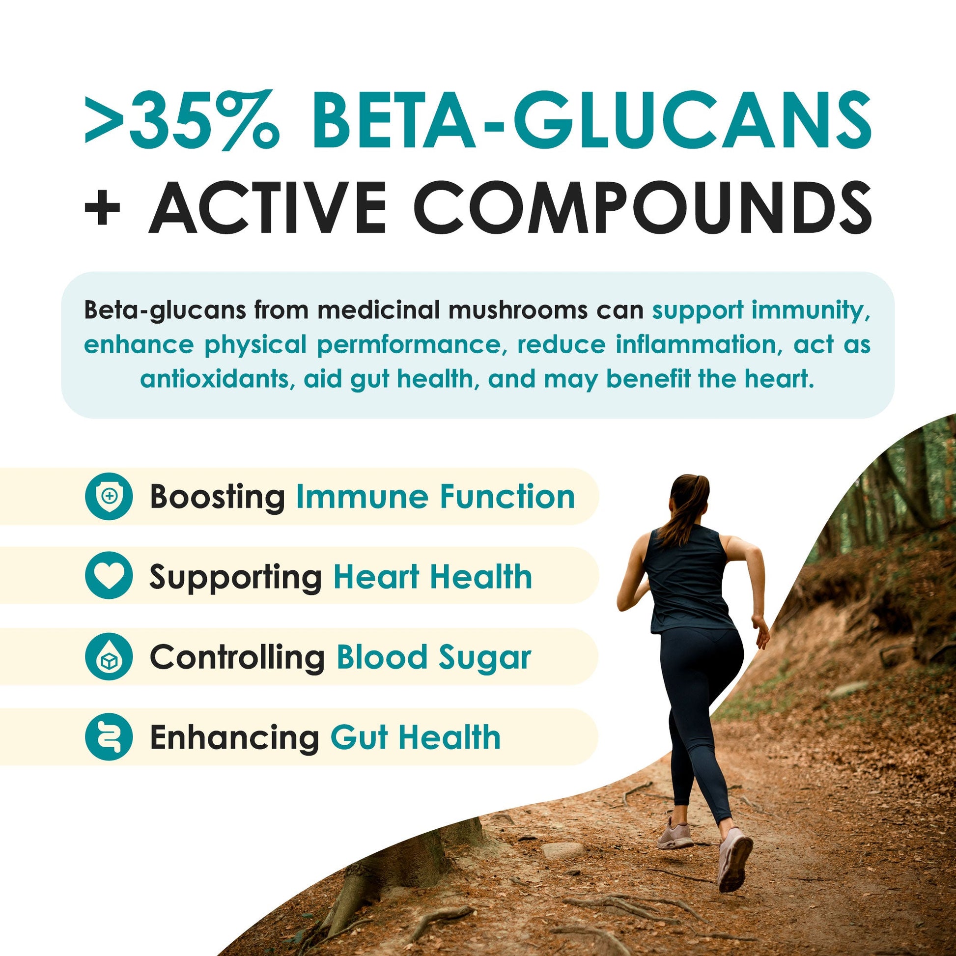 • > 35% Beta-glucans + Active Compounds GUARANTEED