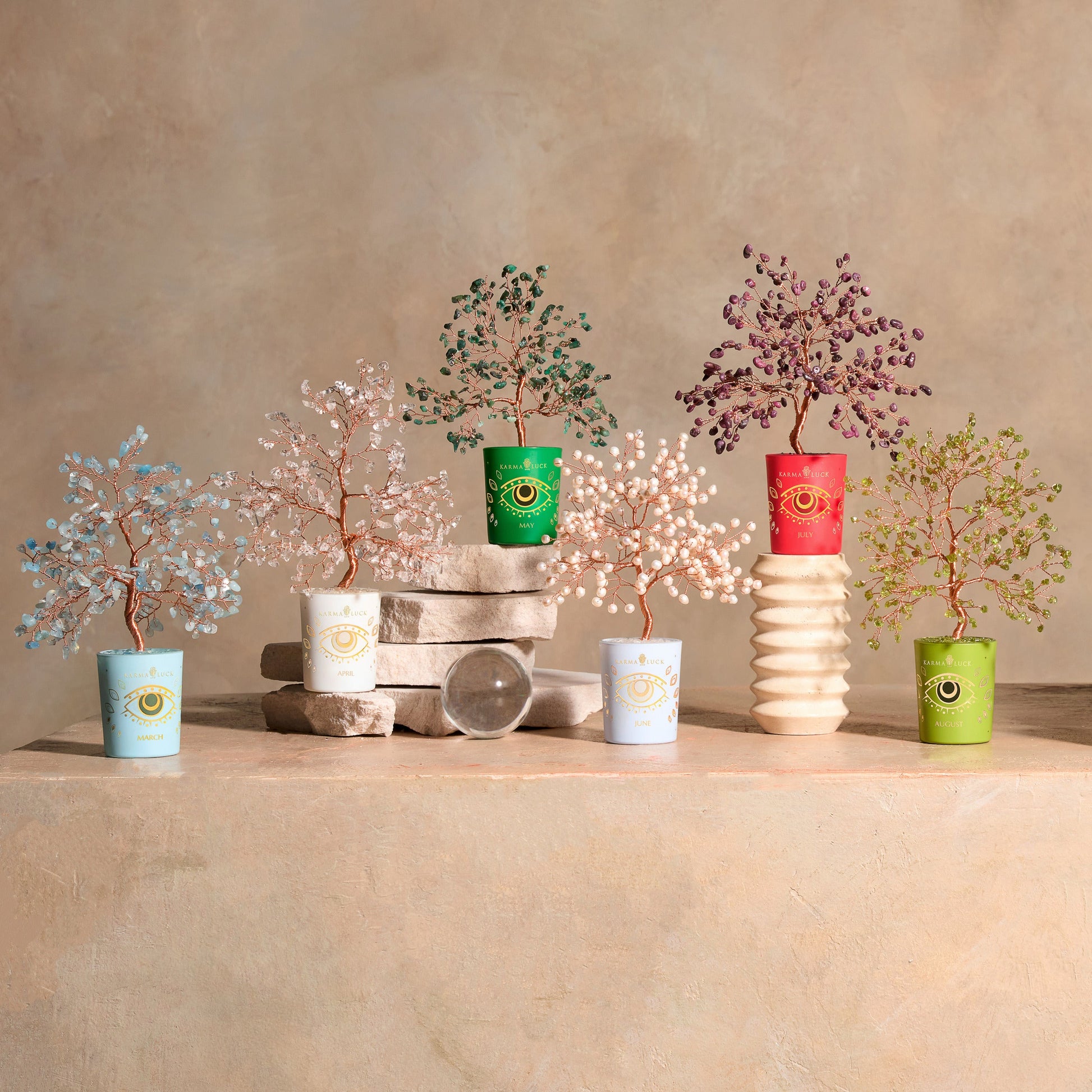 By diving fearlessly into the unknown, you allow miracles to unfold. Handcrafted for all the beautiful souls born in July, this special birthday tree features Ruby leaves and a painted Evil Eye. Ruby, the fiery birthstone of July, is beloved for its passionate energy and ability to promote prosperity, bravery, and wisdom, while the Evil Eye is renowned for its protective qualities. Honor a special person in your life by gifting them the ā€œCourageous Heart Ruby July Birthday Tree.ā€