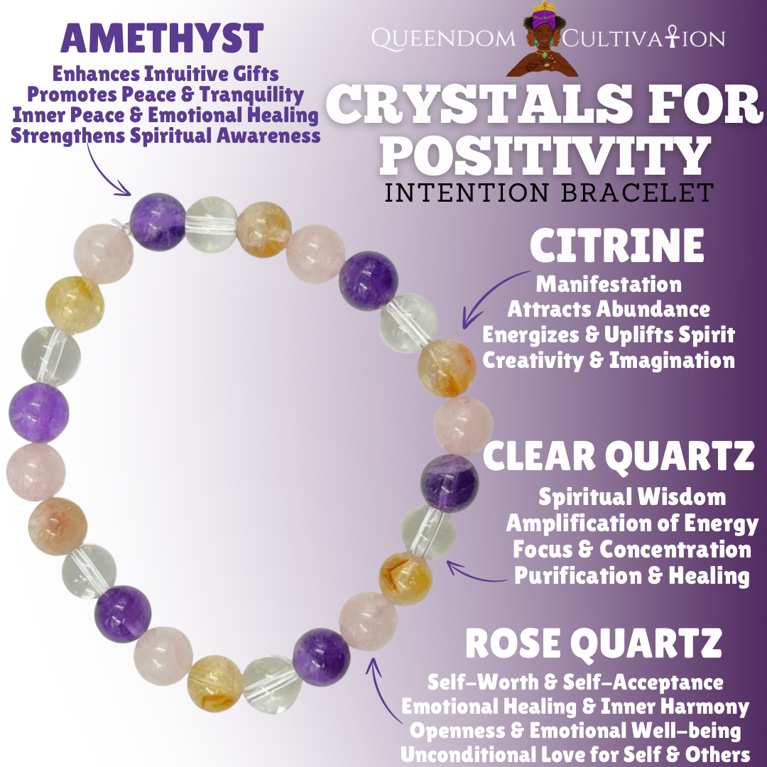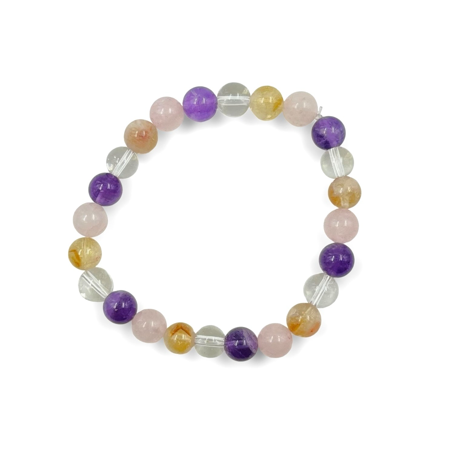 Crystals include: Clear Quartz, Citrine, Rose Quartz and Amethyst.