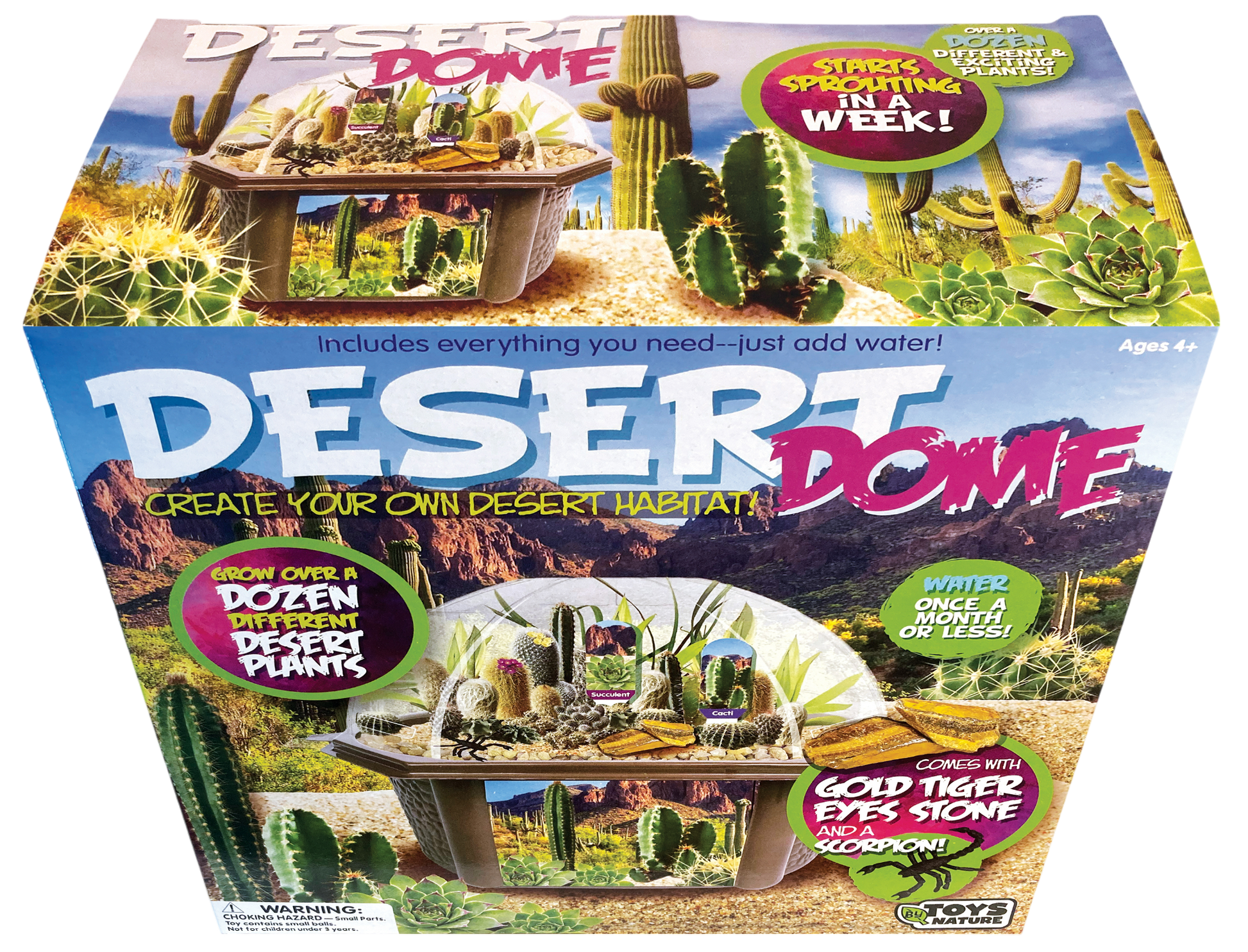 The high-quality planter has superior drainage and side ventilation help your desert plants thrive. It also features a large viewing pane and a Desert Decal. This collection of water-miser plants is quick to sprout and guaranteed to grow! This fun and educational kits comes with everything you need and more, even a Scorpion and Gold Tiger Eye stones- just add water!