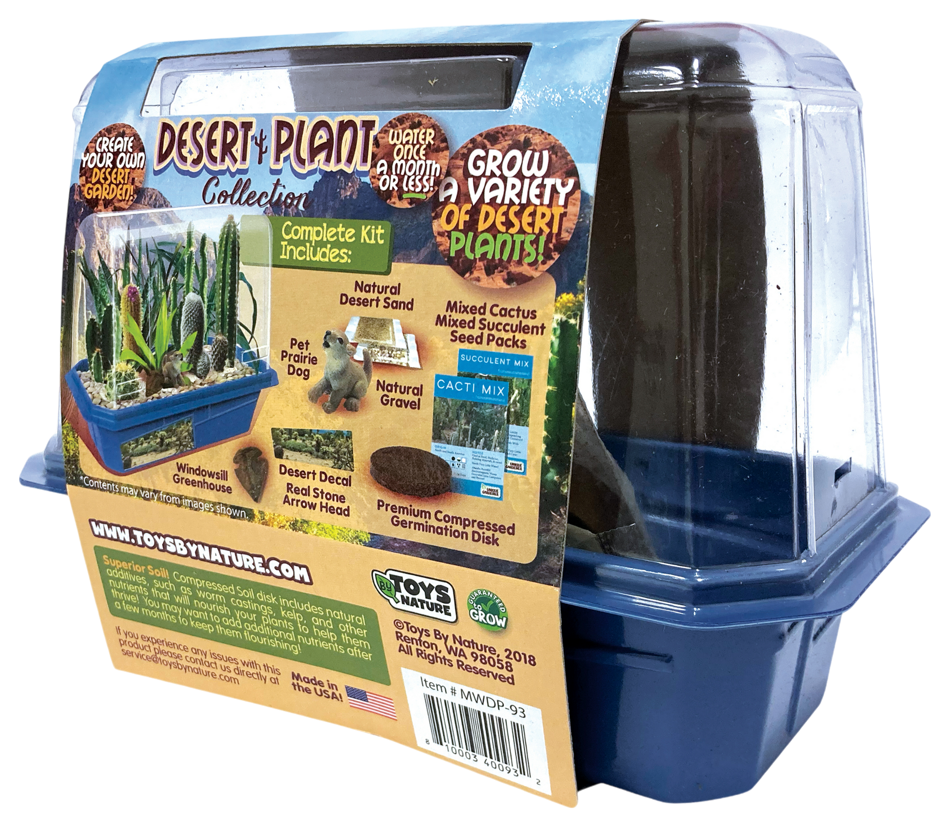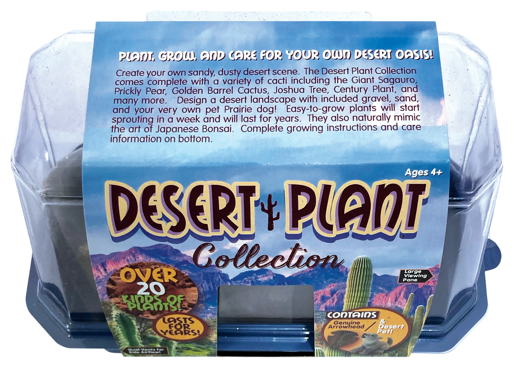 Cacti are actually subset of the larger Succulent grouping. The deluxe mix contains well known succulents such as Aloe, Ponytail Palm, the Century Plant, and Joshua Tree. They are characterized by their ability to store water in hot, sunny climates. These plants are also extremely useful to humans and wildlife alike! What is really interesting about these plants is that they naturally “bonsai.” This means that they will only grow as big as the environment they are in will let them, whether it is a pot, a crack in a stone, or out in the wide open. As a result, the same plants can appear small or grow to amazing heights simply depending upon where they are growing!