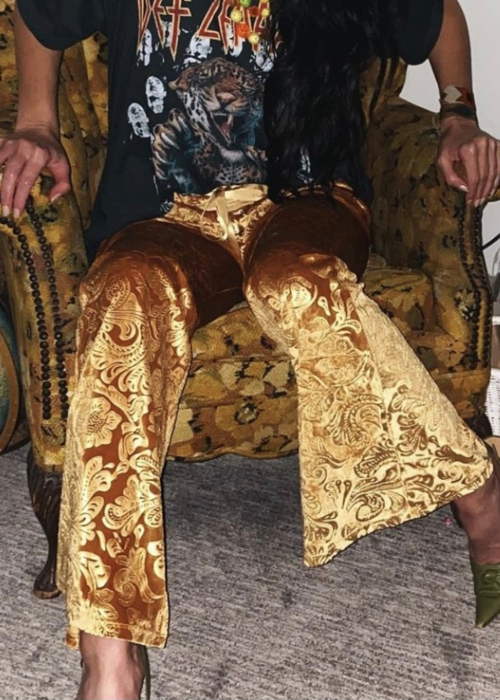 Desert Rose Mustard Yellow Burnout Velvet Flared Bell Bottom Pants