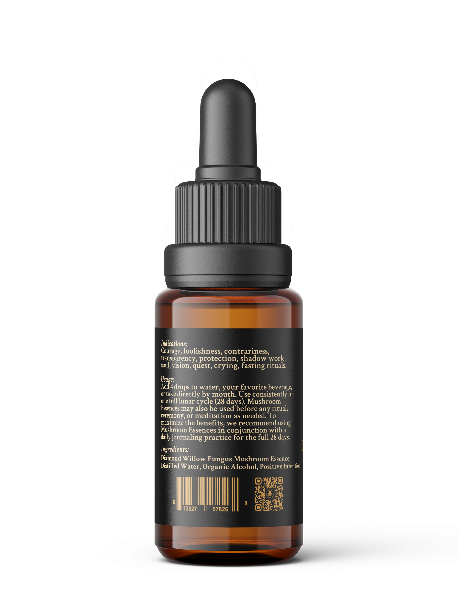 Diamond Willow Fungus Mushroom Essence (Haploporus odorus) is indicated for: courage, foolishness, contrariness, transparency, protection, shadow work, soul, vision, quest, crying, and fasting rituals.