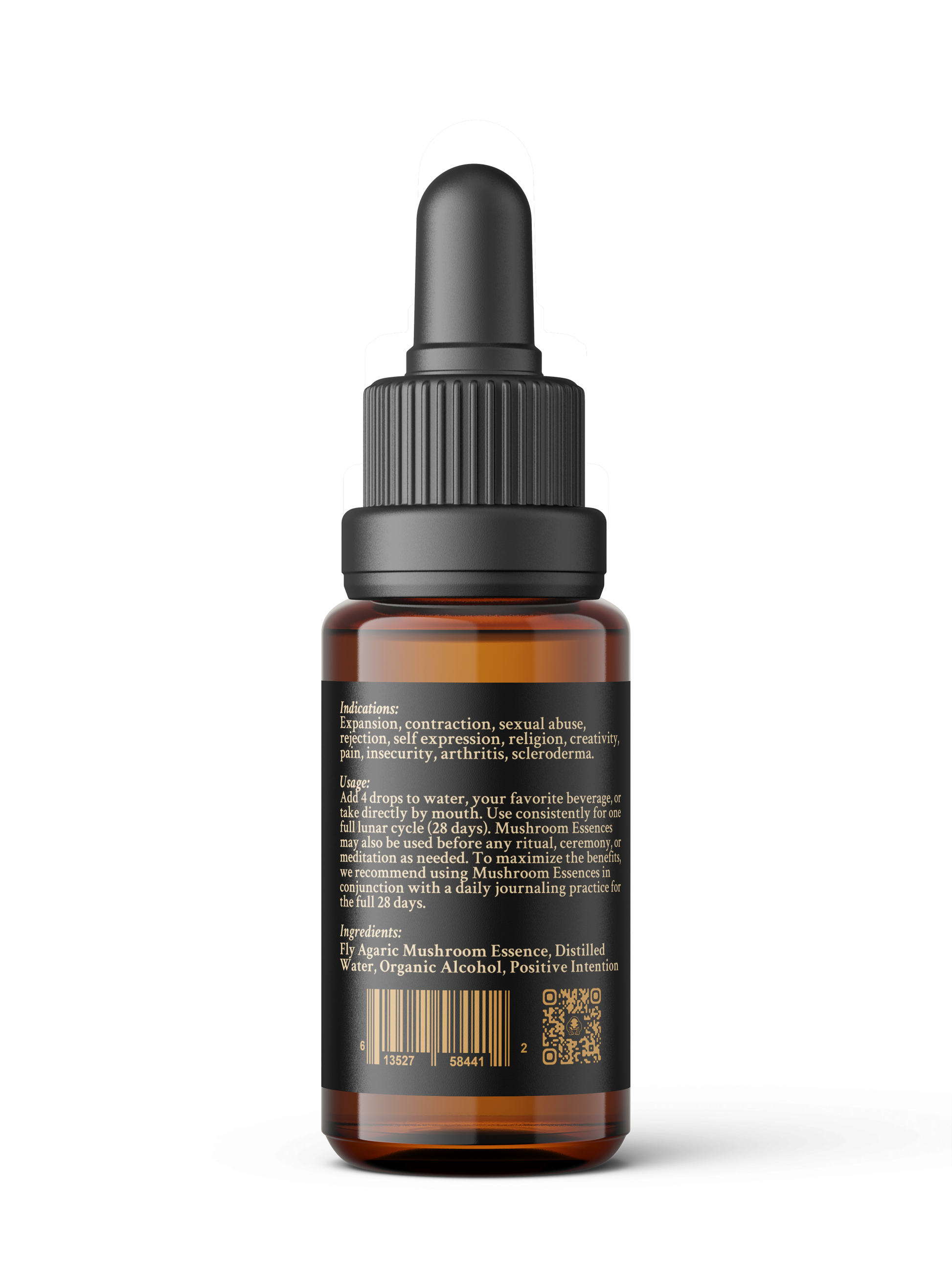 Fly Agaric Mushroom Essence (Amanita muscaria) is indicated for: expansion, contraction, sexual abuse, rejection, self-expression, religion, creativity, pain, insecurity, arthritis, and scleroderma.