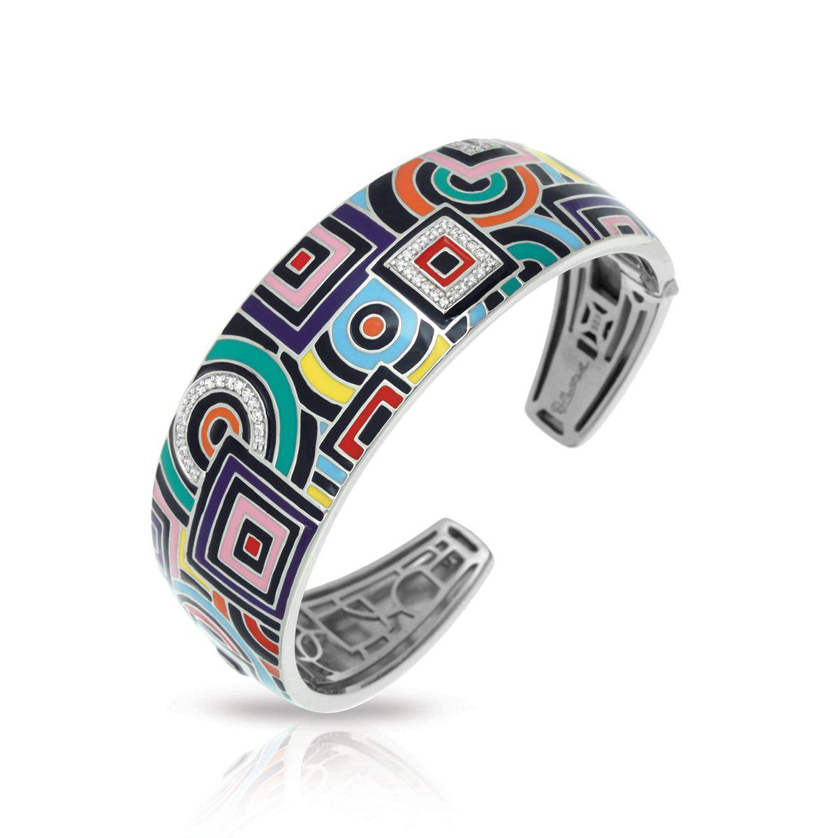 Description: Hand-painted multicolor Italian enamel with white stones set into rhodium-plated, nickel allergy-free, 925 sterling silver.