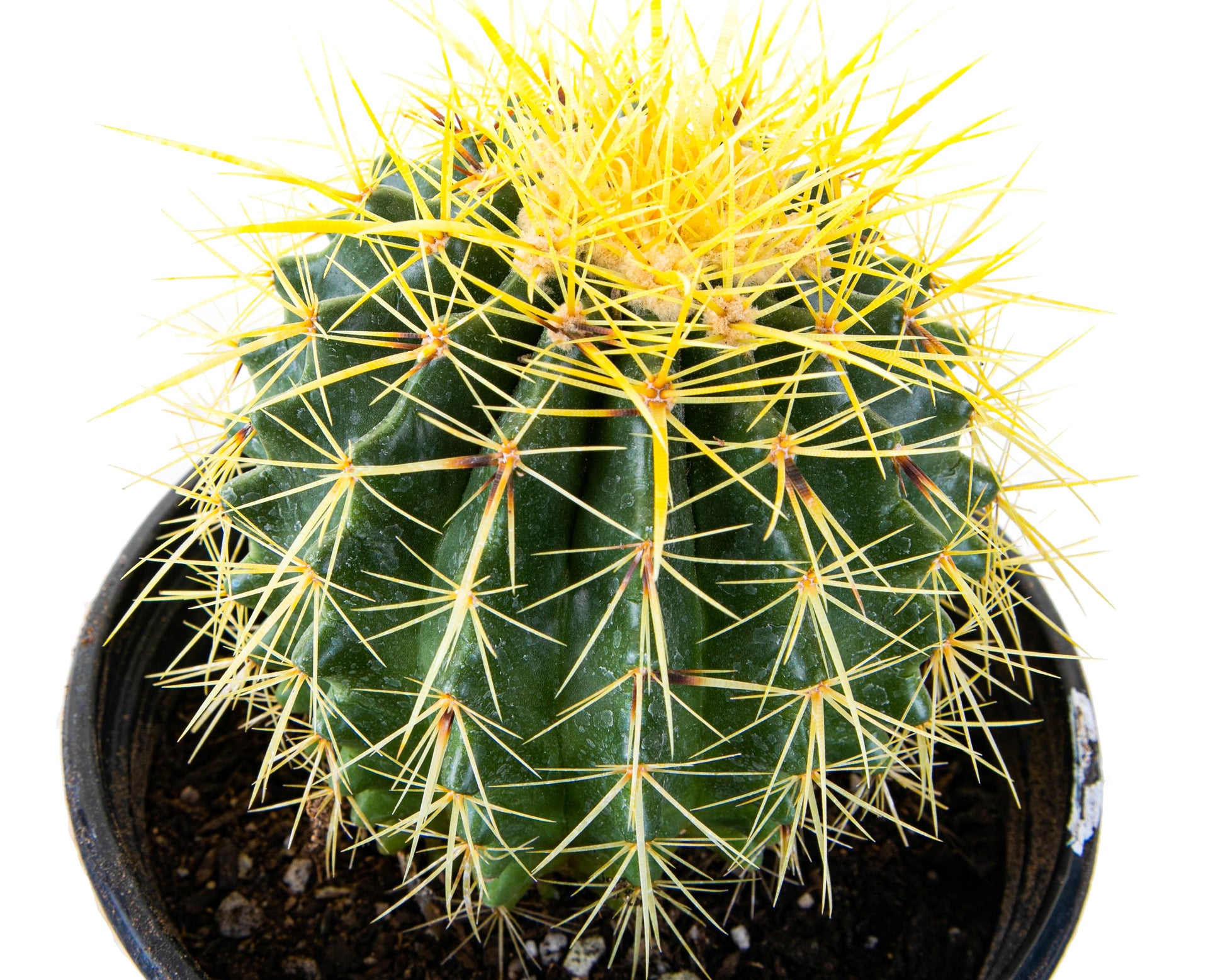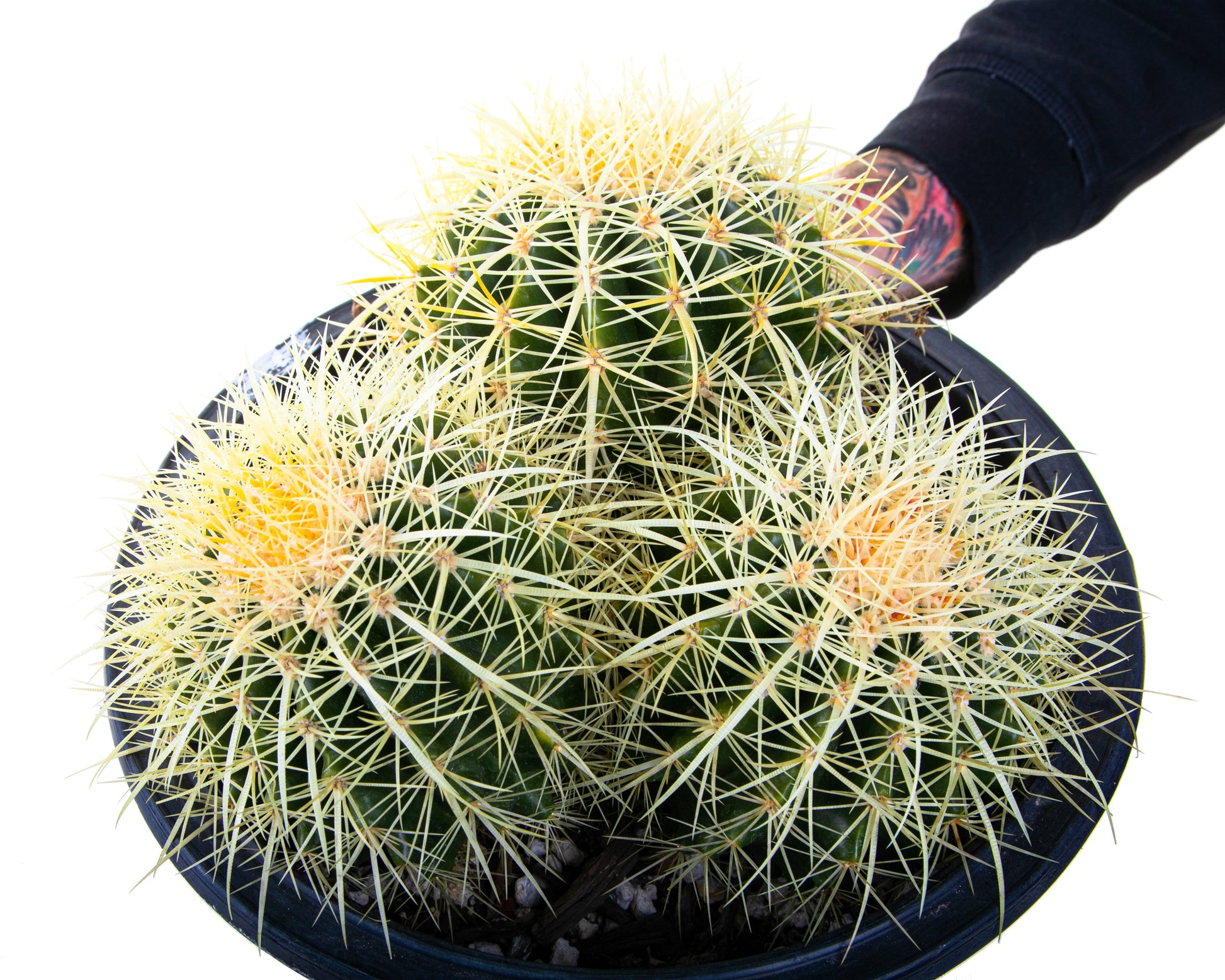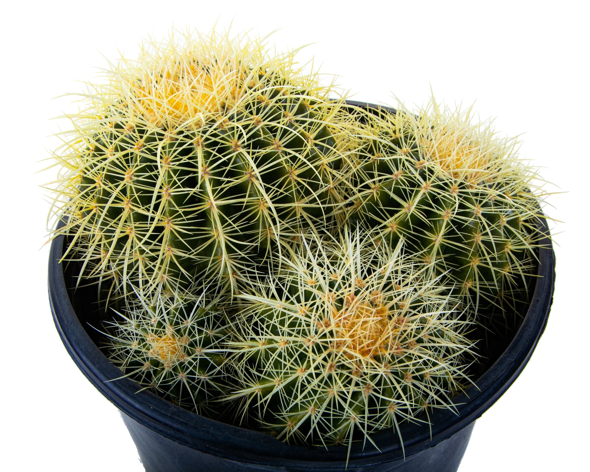 Echinocactus grussoni. Beautiful golden spined barrel cactus that grows to 2' tall and wide. Striking in a pot or in a landscape.