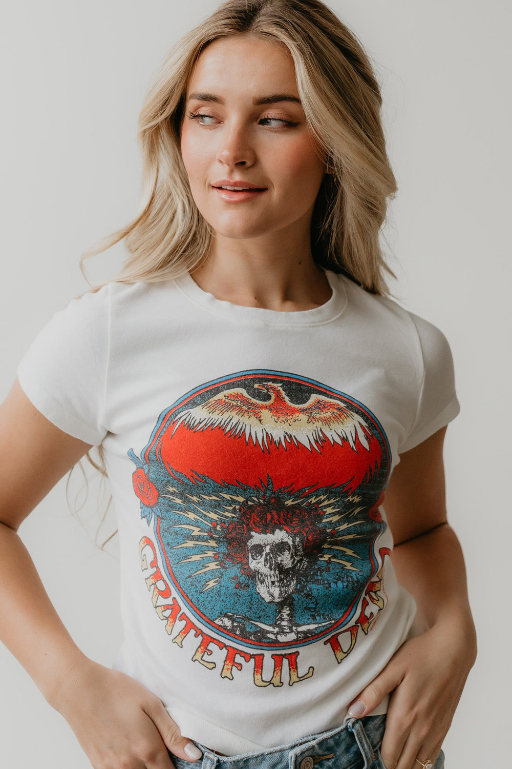 So simple, so chic, so rock 'n' roll. For the minimalist rocker girl who had to grow up a little, but not too much. Throw on our vintage-inspired tee from our favorite collection.