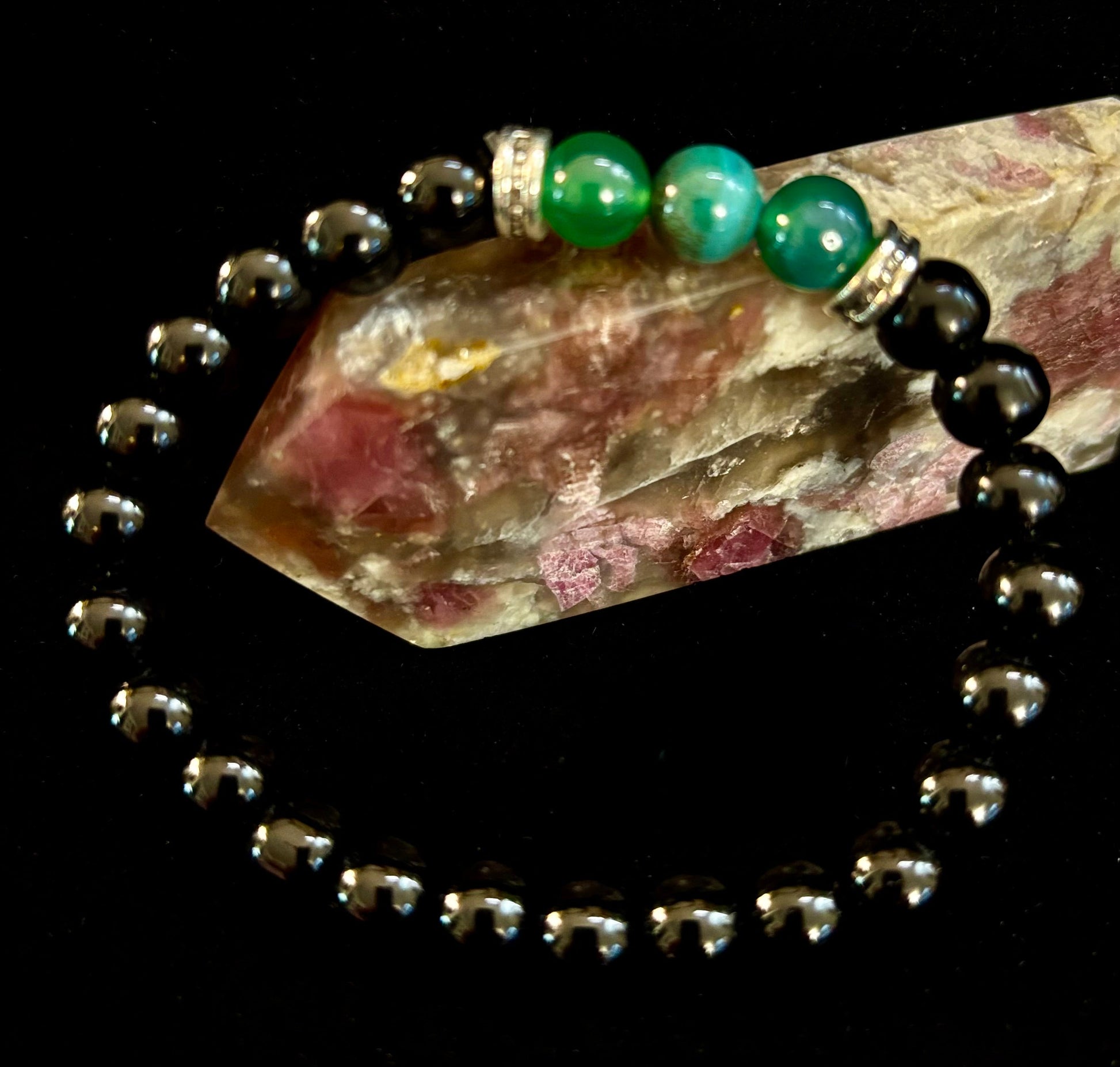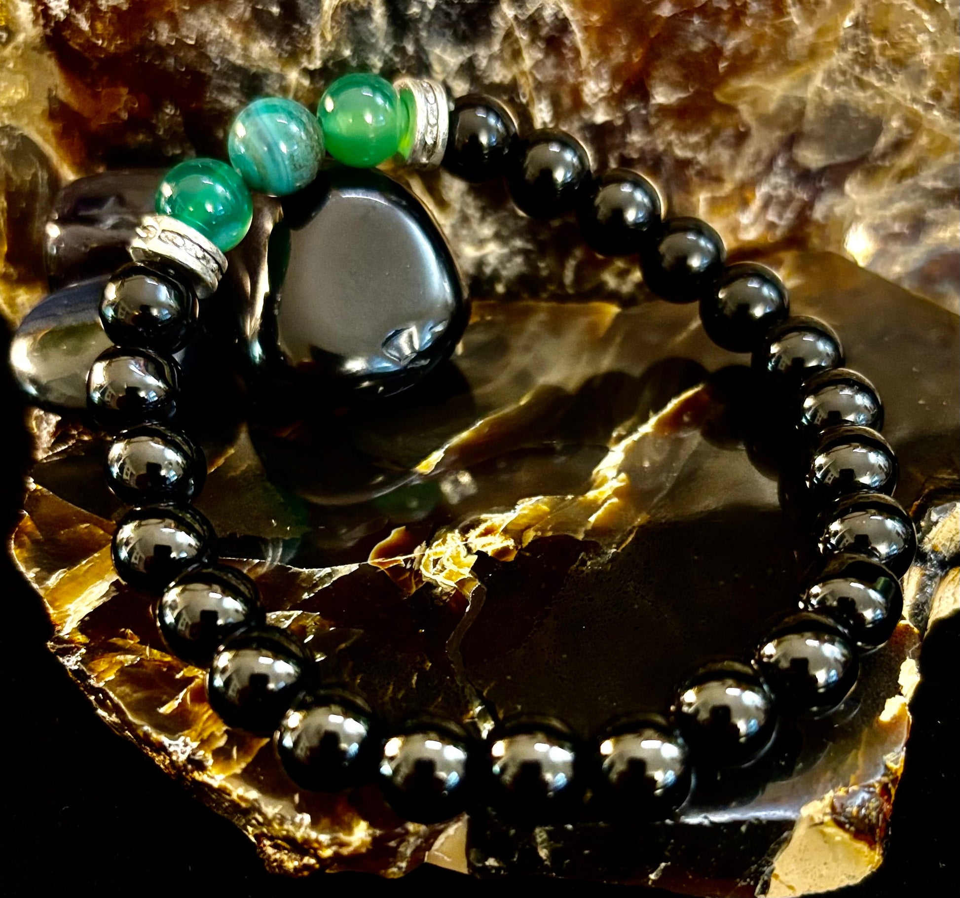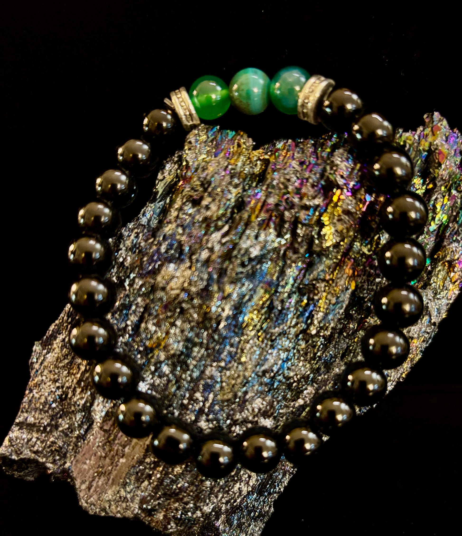 The natural stones are celebrated not only for their striking beauty but also for their calming and balancing properties, helping to promote clarity and inner peace. With a comfortable stretch fit, this bracelet is designed to suit medium wrists (snug on larger wrists), ensuring durability and ease of wear throughout the day.