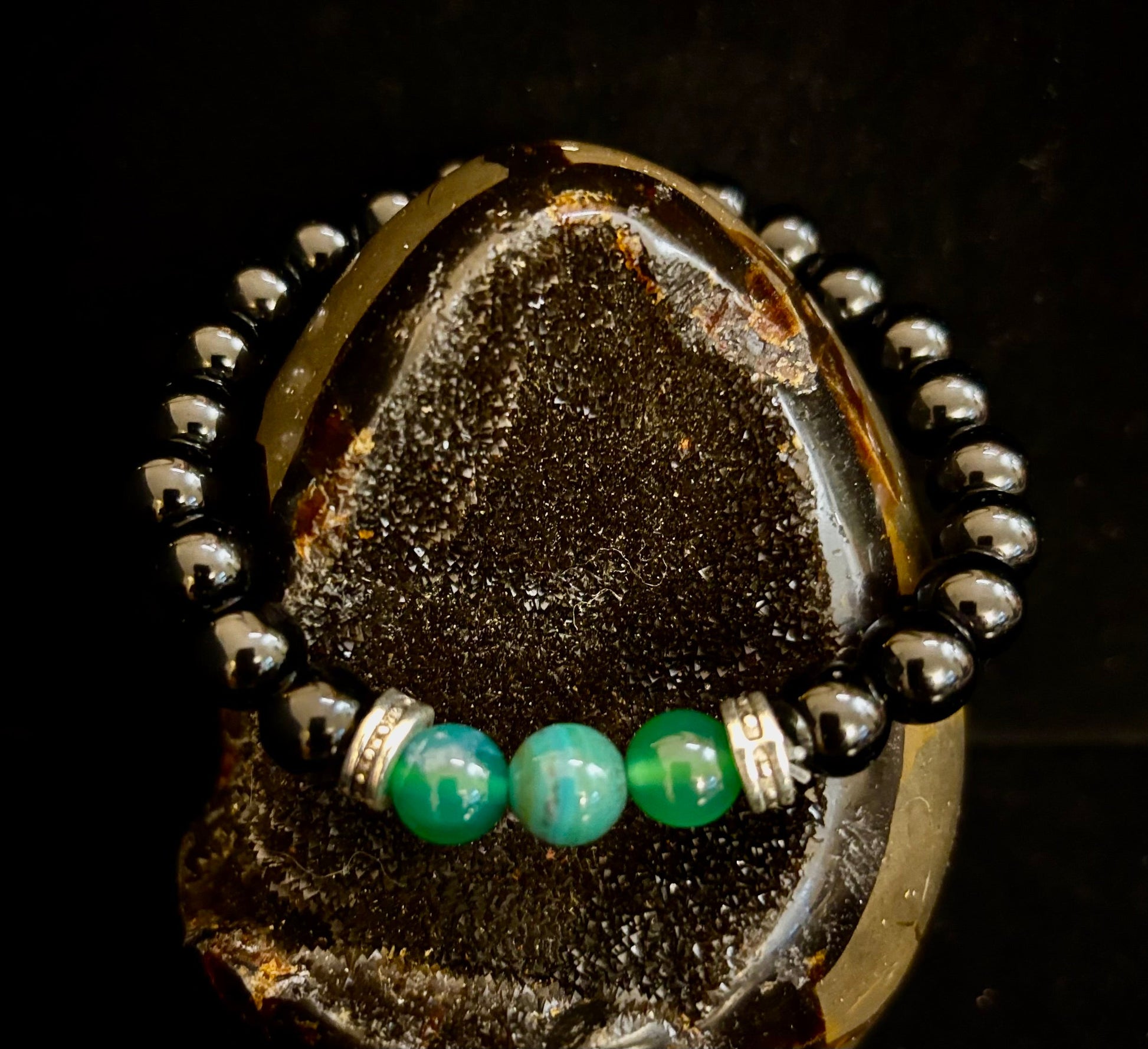 Green Natural Stone Stretchy Bracelet – Handcrafted in Turkey