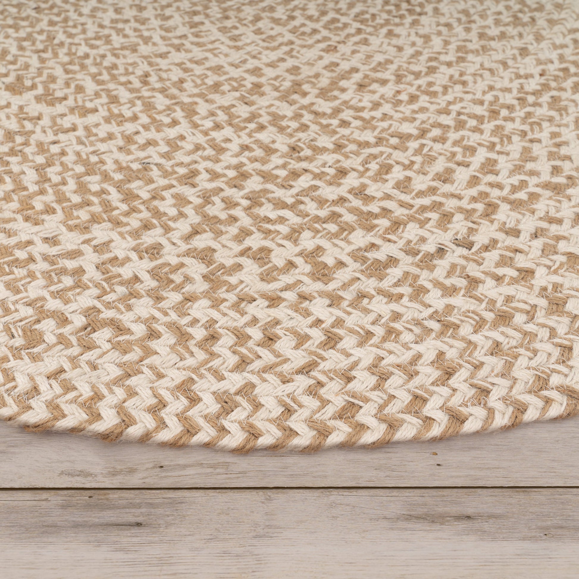 Hand-Woven Boho Rug Kaia Round with Natural Jute Fibers in Beige Ivory