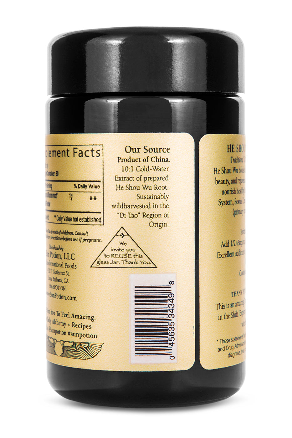 He Shou Wu has a history of use as a longevity, anti-aging, blood-building, beauty, & rejuvenation food.