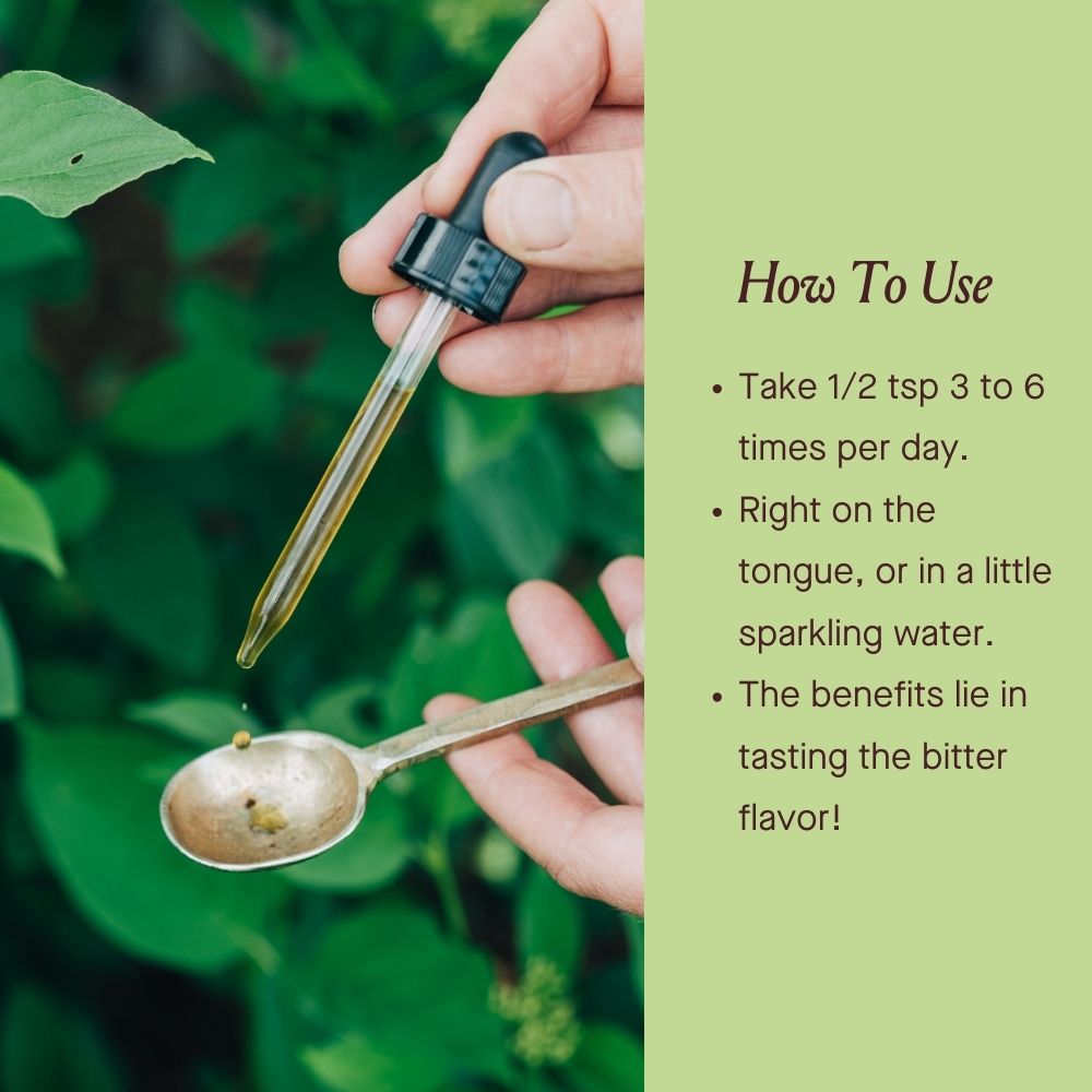 Do not use if you are allergic to plants in the parsley (Apiaceae) family. Do not use if you have liver or gallbladder disorders, bowel obstruction, or active peptic ulcers. Discomfort due to gastric hyperacidity may occur after taking bitter herbs. Consult your healthcare practitioner prior to use if you are pregnant or breastfeeding, or for use in children under 12 years of age. People with diabetes are advised to monitor their blood sugar closely and discuss the use of this product with a qualified healthcare practitioner prior to use.