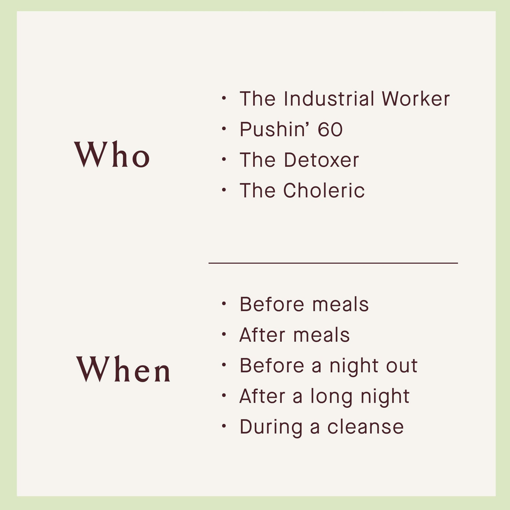 A rich and herbaceous bitters blend specifically formulated to support normal detoxification processes and healthy liver function*.