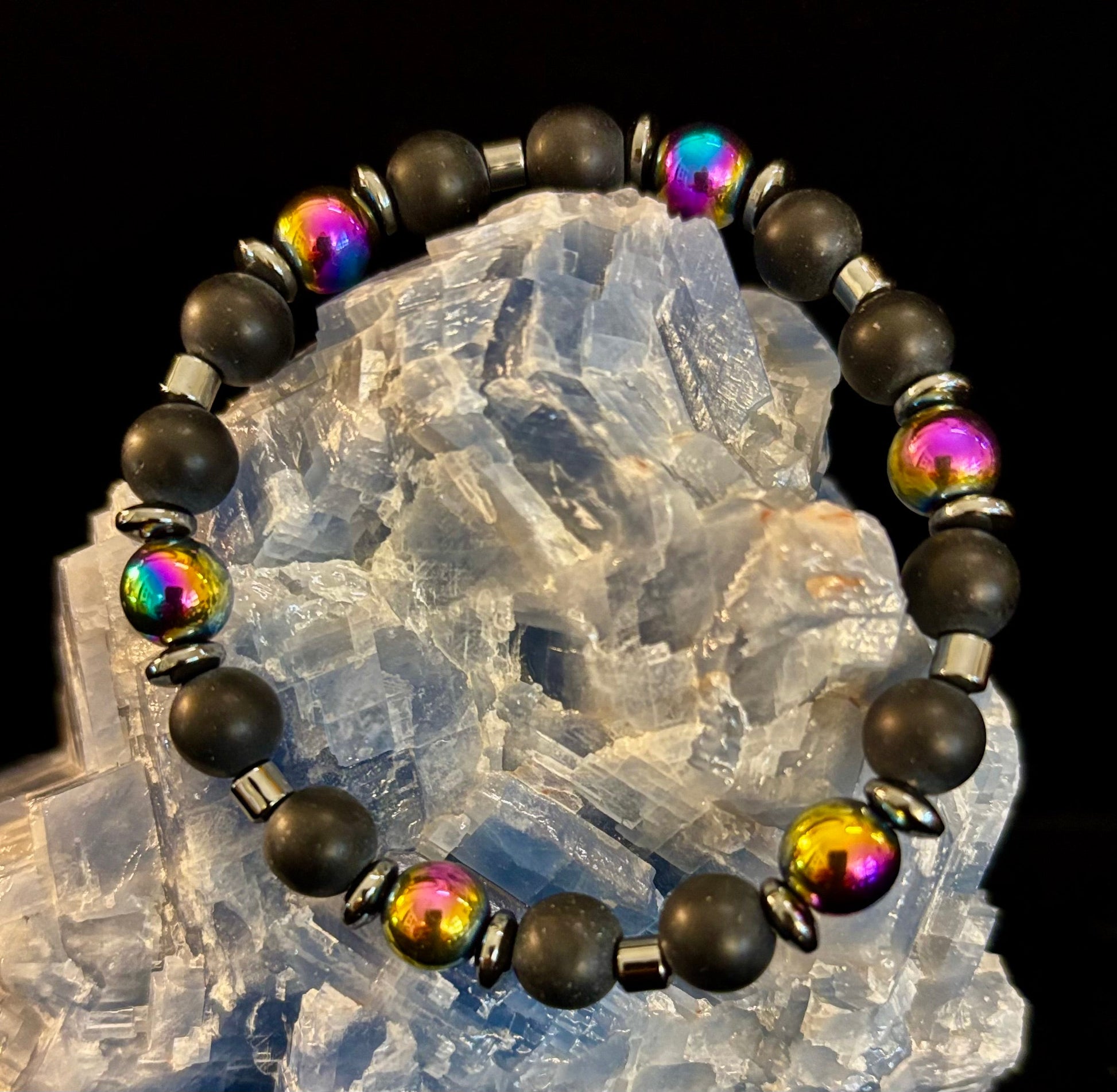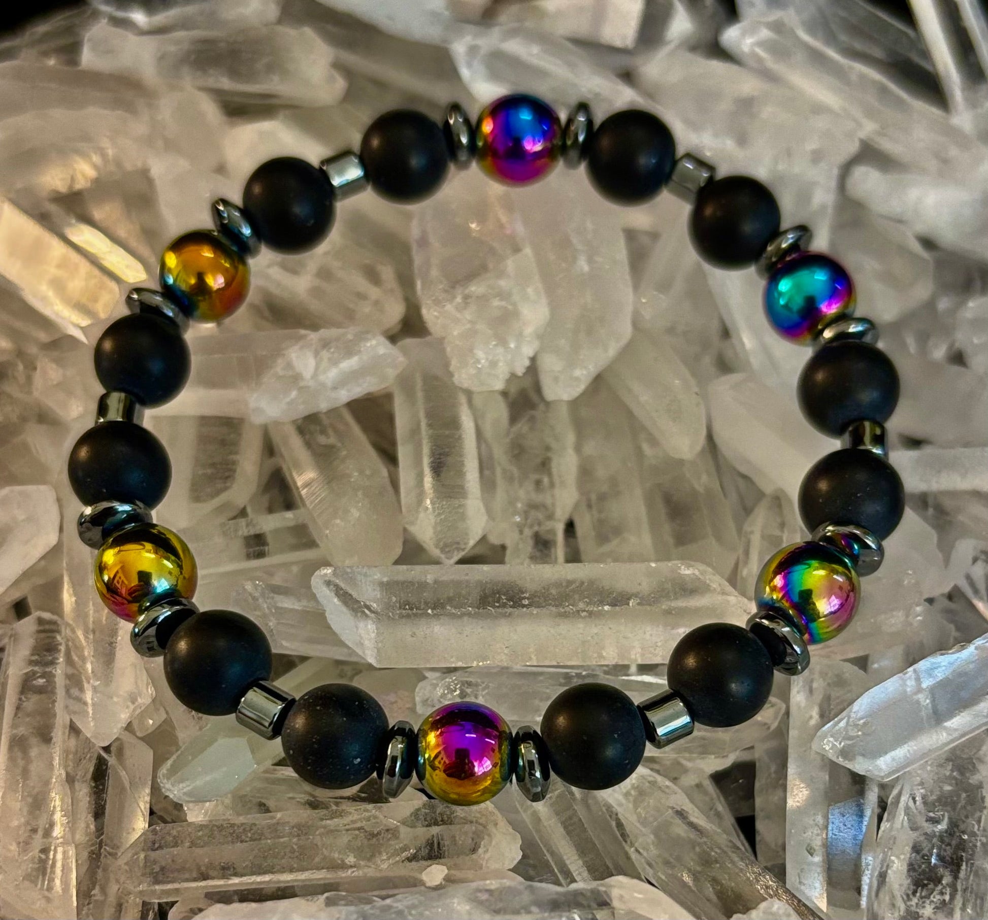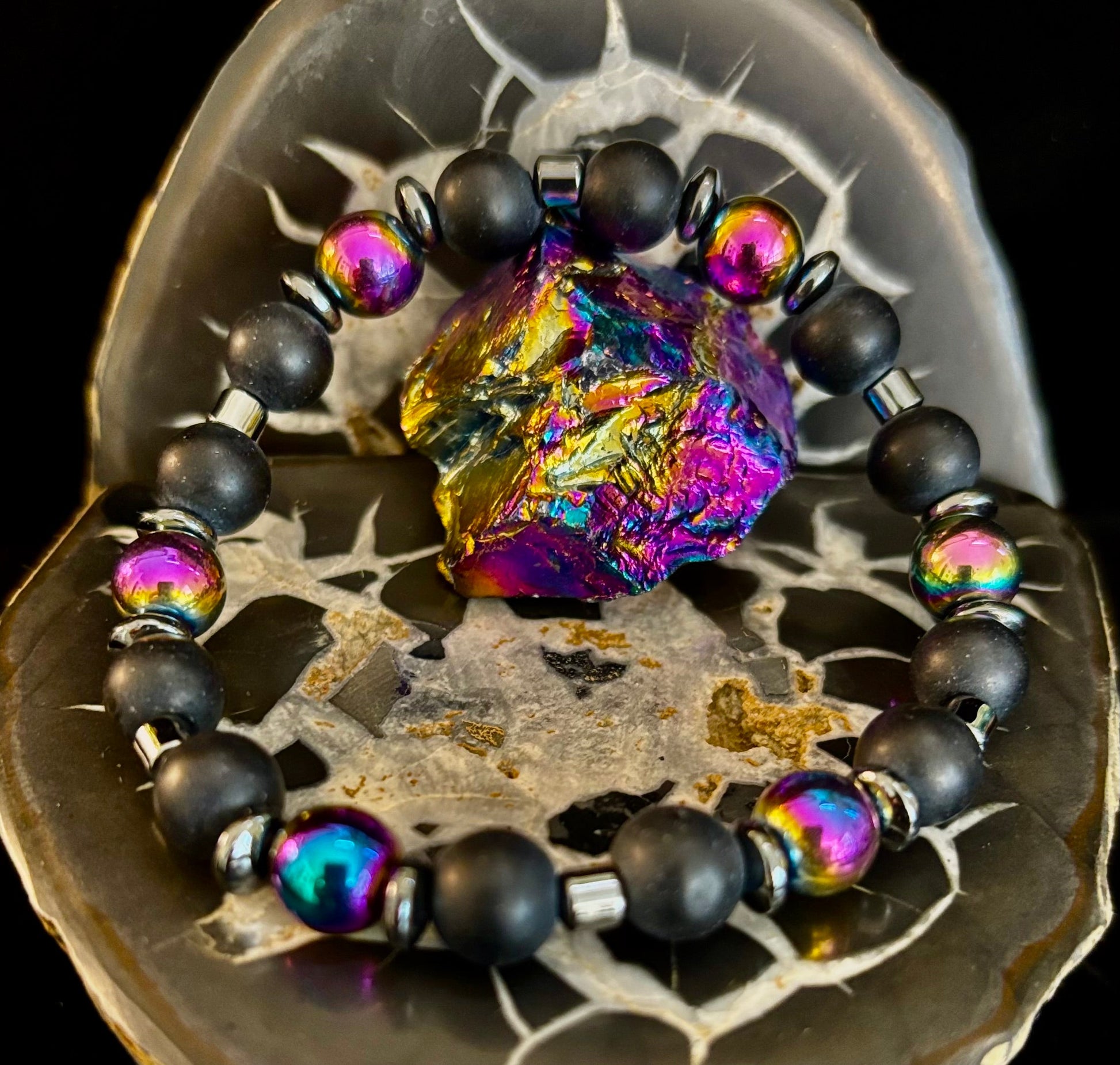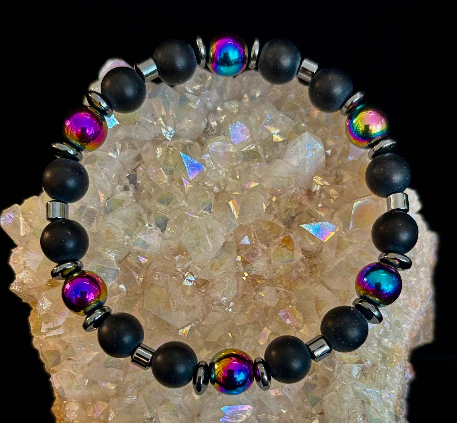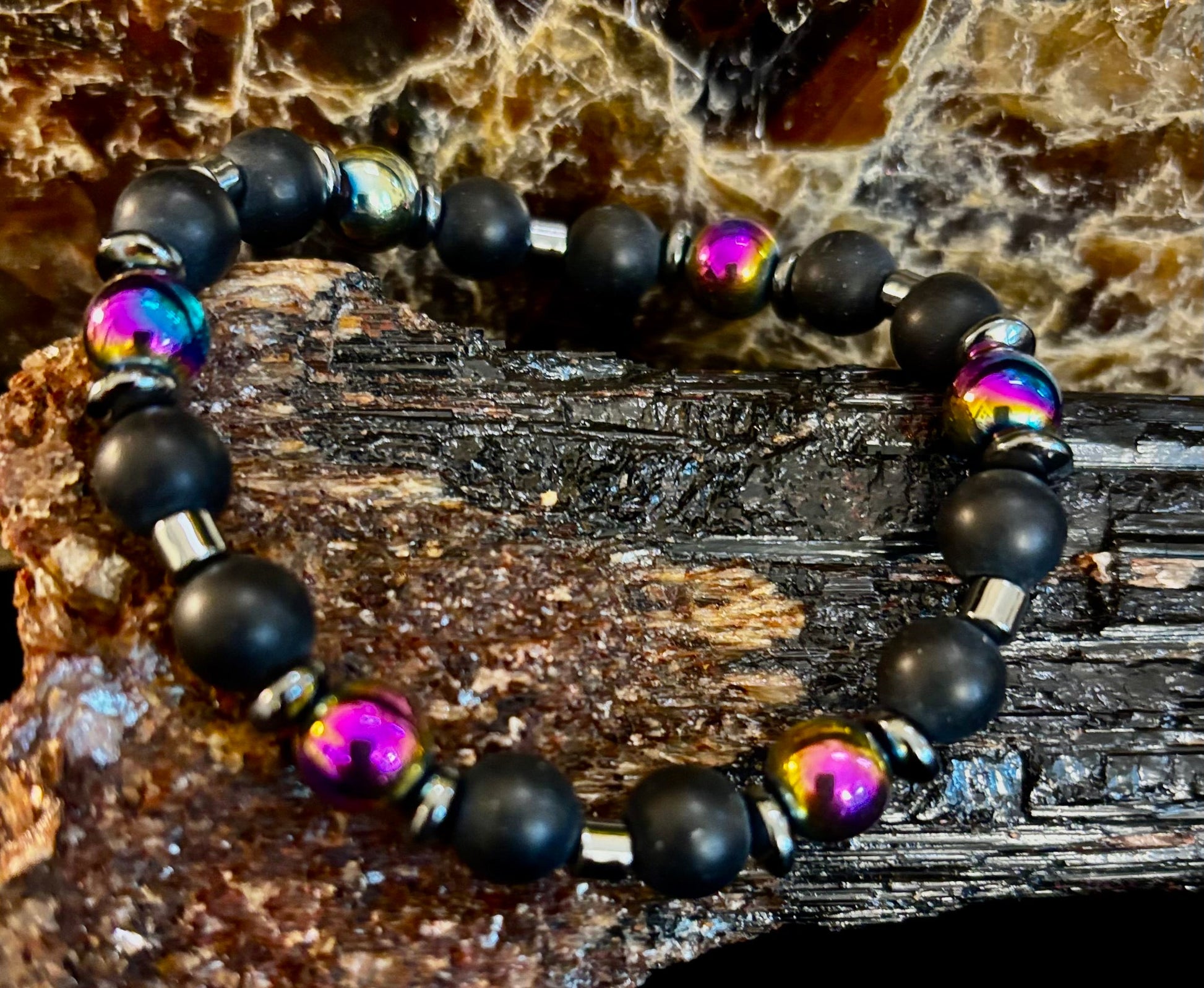 Crafted on a durable stretch cord, it’s built for everyday wear while maintaining a sleek and versatile look. Whether you’re dressing up for a night out or adding a subtle edge to your casual style, this artisan-crafted bracelet makes the perfect statement piece. It’s also an ideal gift for him, her, or they—a thoughtful way to combine fashion and intention.