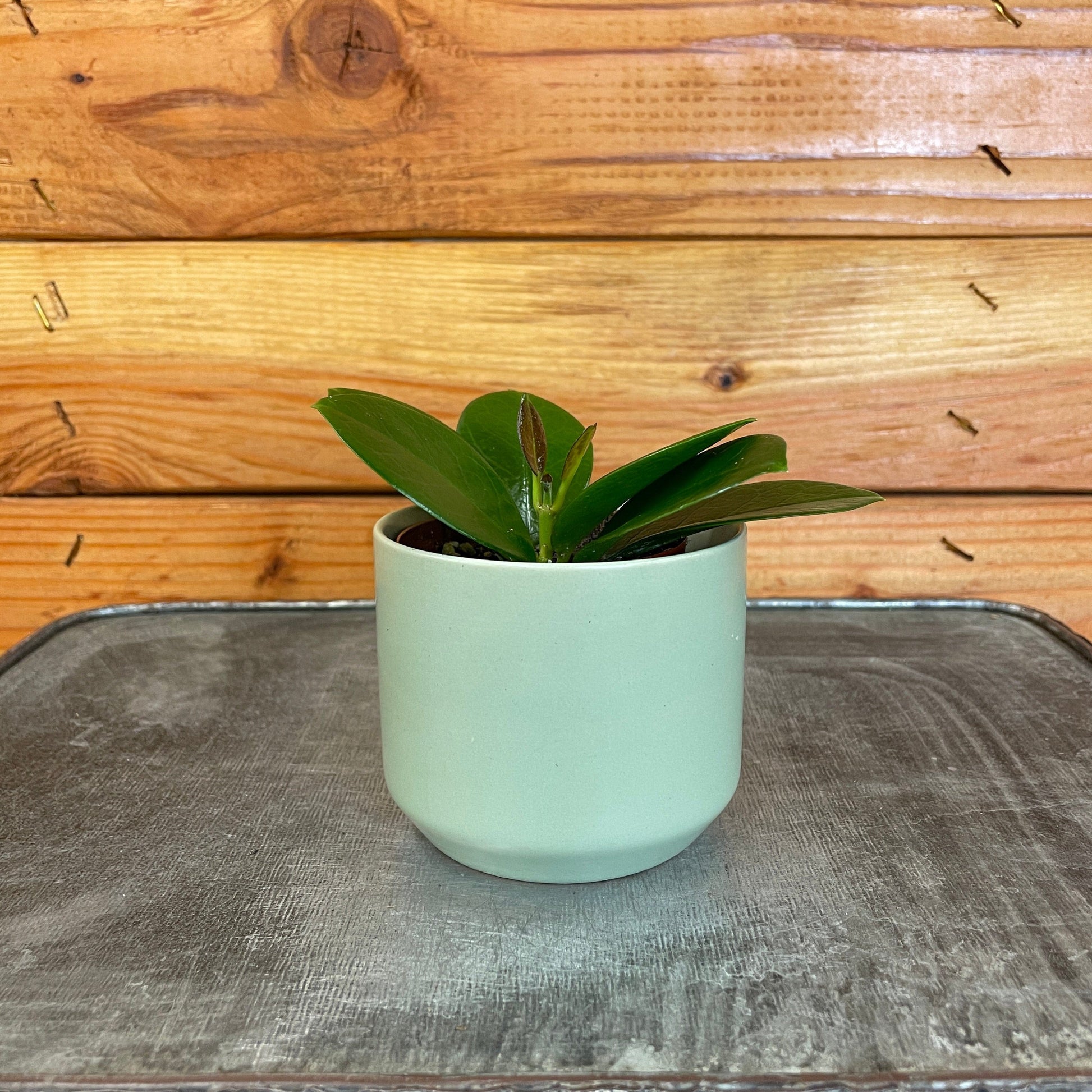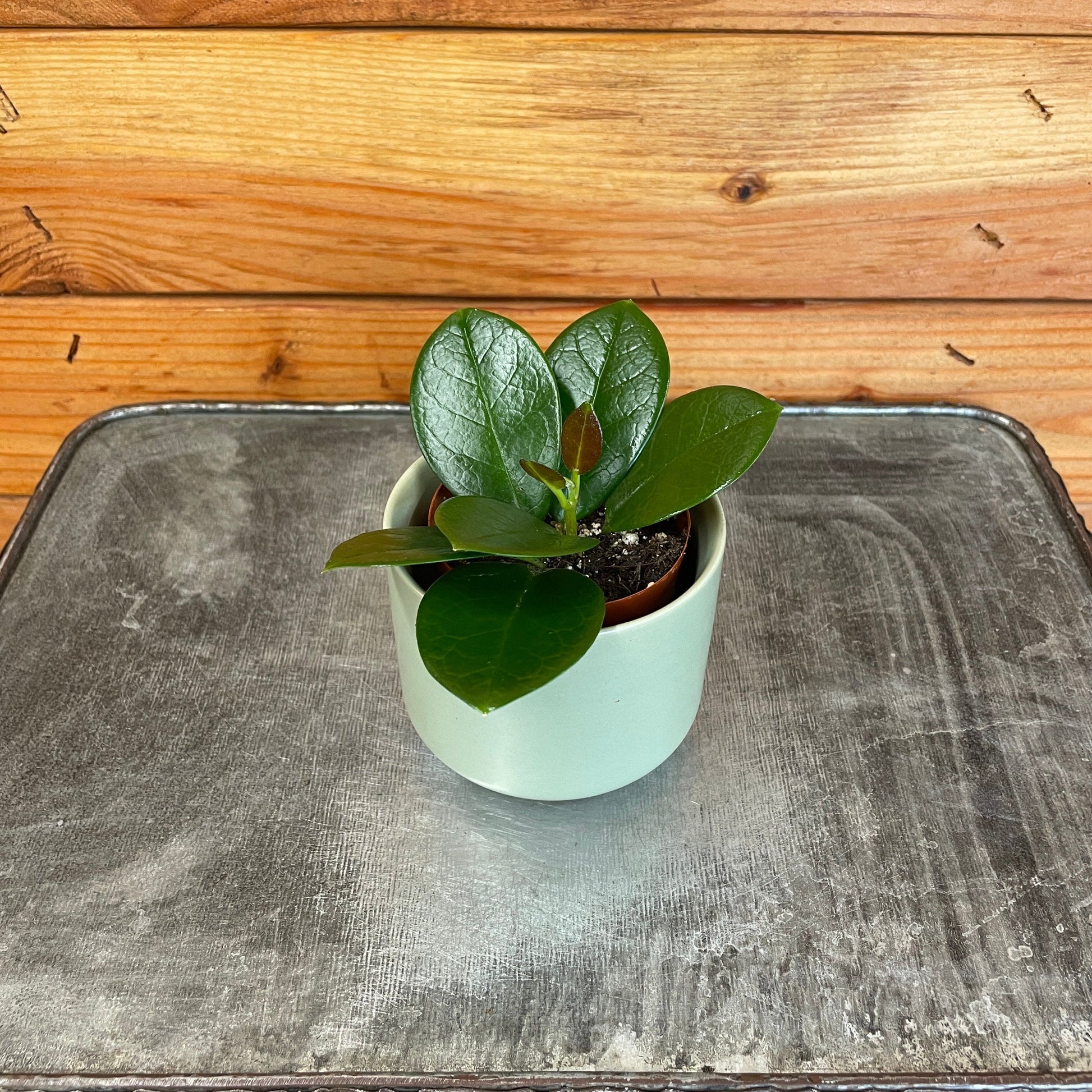 This plant has unique round green leaves. Hoyas make beautiful houseplants and when cared for properly they bloom parachute clusters of star-shaped flowers with five-point centers like nothing else! This plant is native to Eastern Asia and Australia.