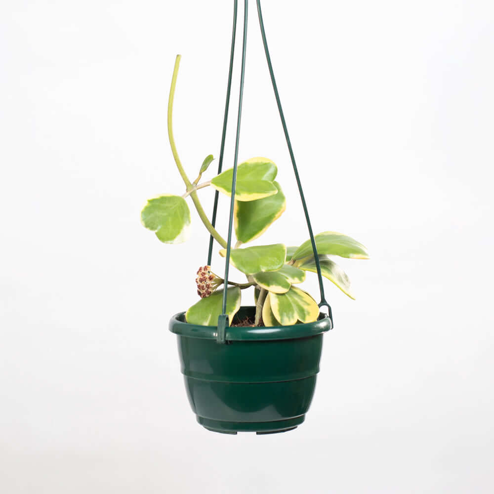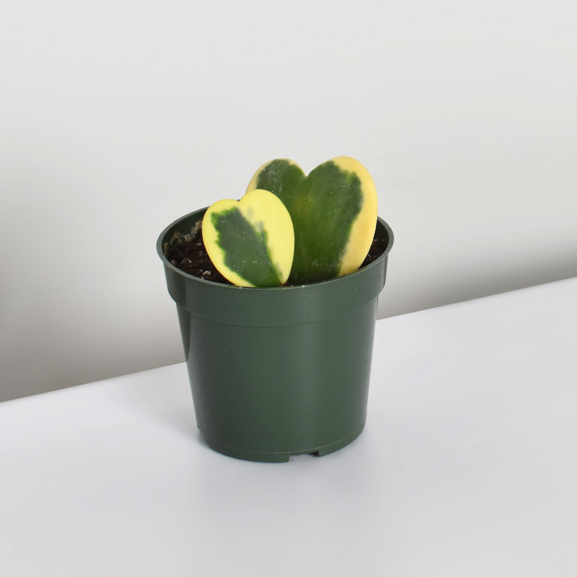 This plant comes potted as pictured and shall produce more nodes and produce its heart-shaped variegated waxy leaves. This is a semi-succulent, perennial, that trails and vines with lush waxy foliage and gorgeous umbrella blooms. Needs bright light and drying between watering but will give you amazing growth in hanging pots or elevated shelves. A perfect plant for novice houseplant owners.