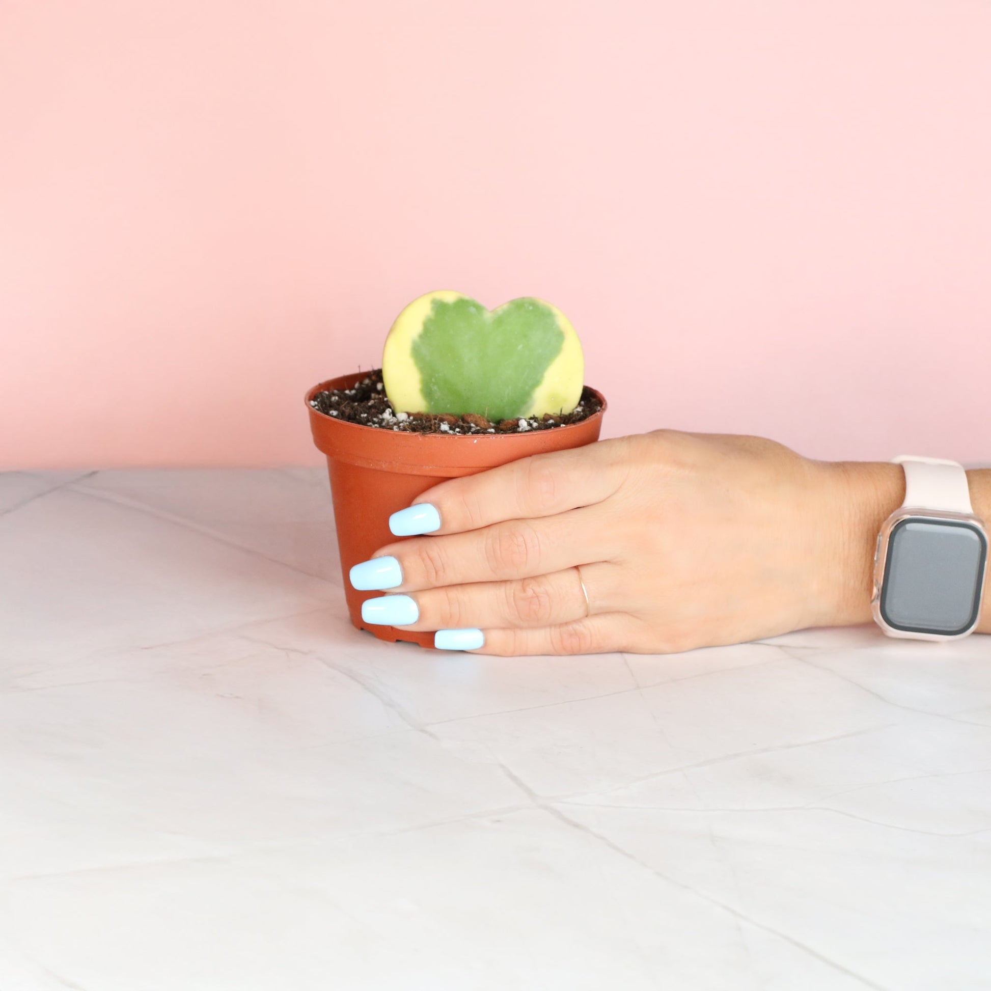 So excited to finally offer the variegated version of a plant we fall in love with over and over again. This plant is a favorite hoya with heart-shaped leaves and the Hoya 'Kerri' Variegated is the iconic Sweetheart plant. The waxy and hardy leaves on this plant measure anywhere from 2 inches to 4 inches at full maturity with gorgeous yellow edges.