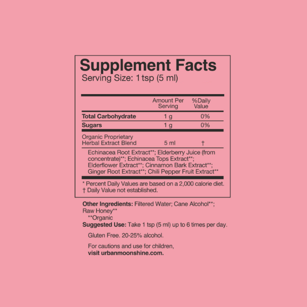 Organic Proprietary Herbal Extract Blend: Organic Echinacea Root; Org. Elderberry Juice (from concentrate); Org. Echinacea Tops; Org. Elderflower; Org. Cinnamon Bark; Org. Ginger Root; Org. Chili Pepper Fruit.