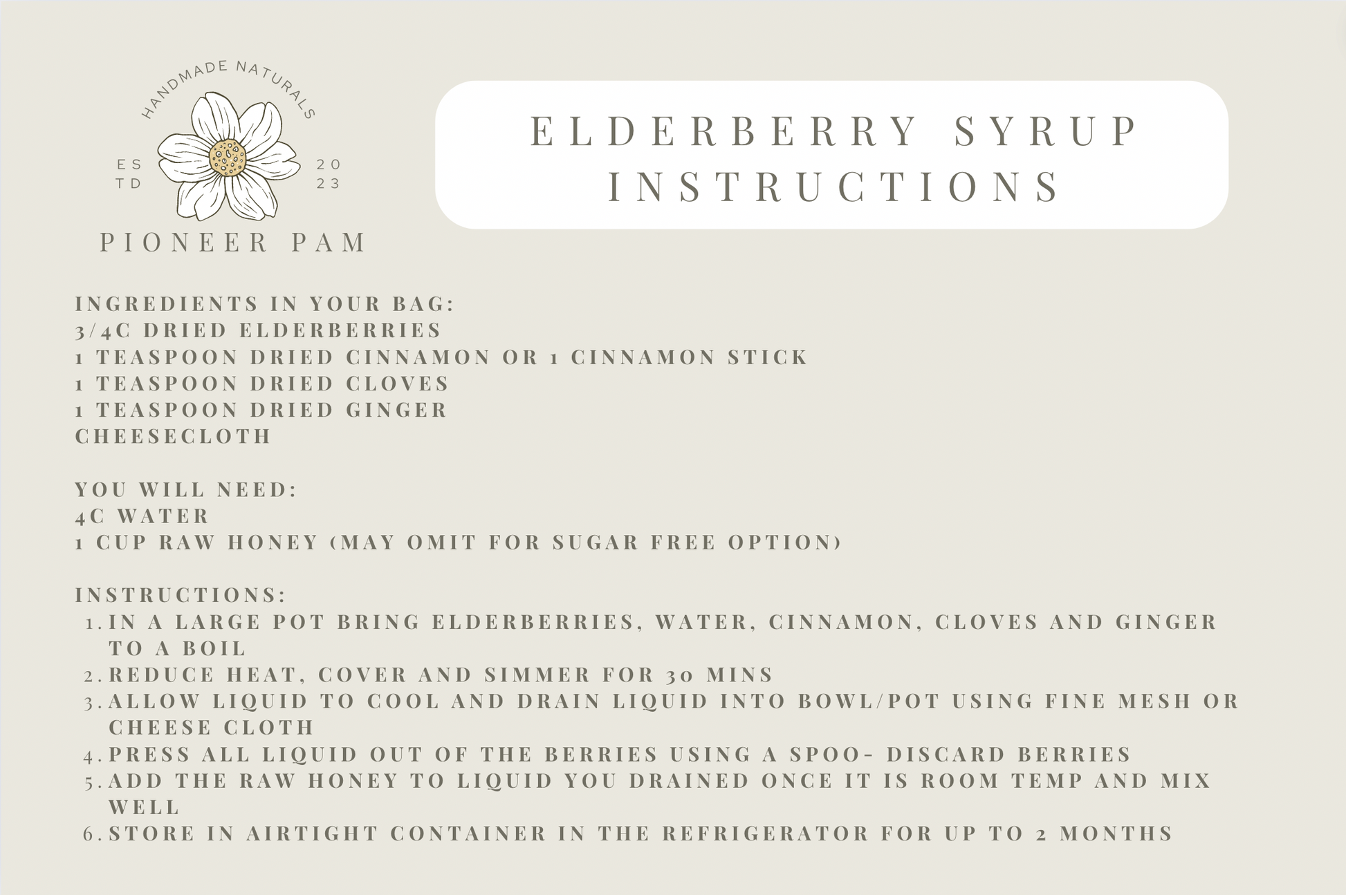 Includes organic elderberries, spices, silicone cheesecloth, directions as well as a video tutorial.