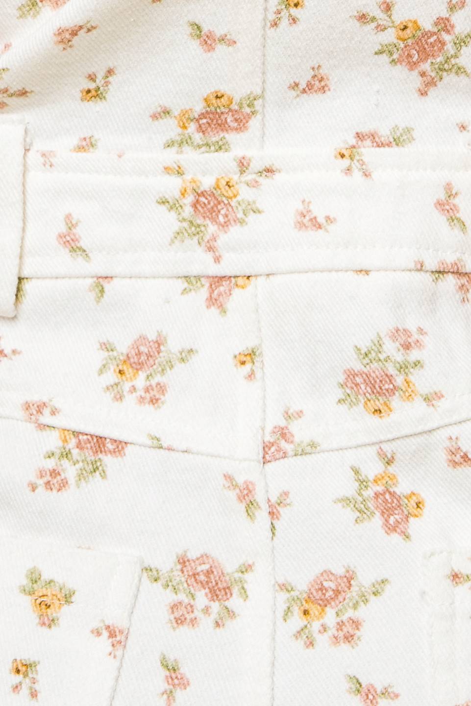 A floral printed woven overall romper.