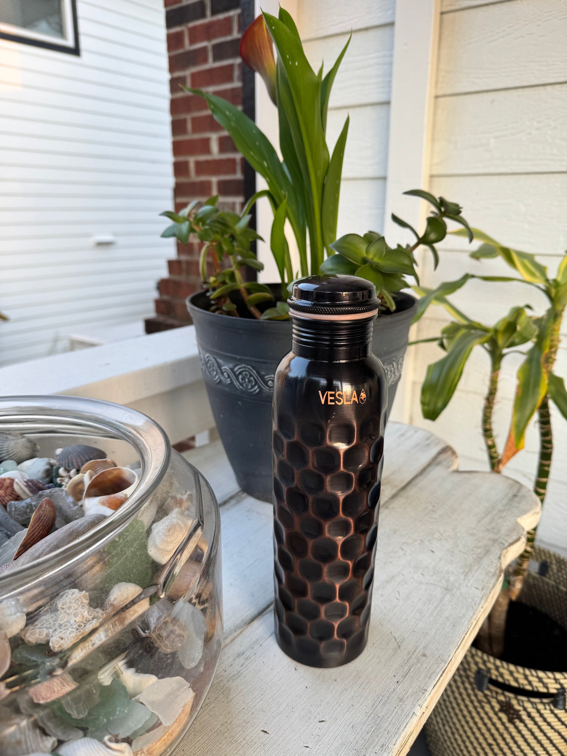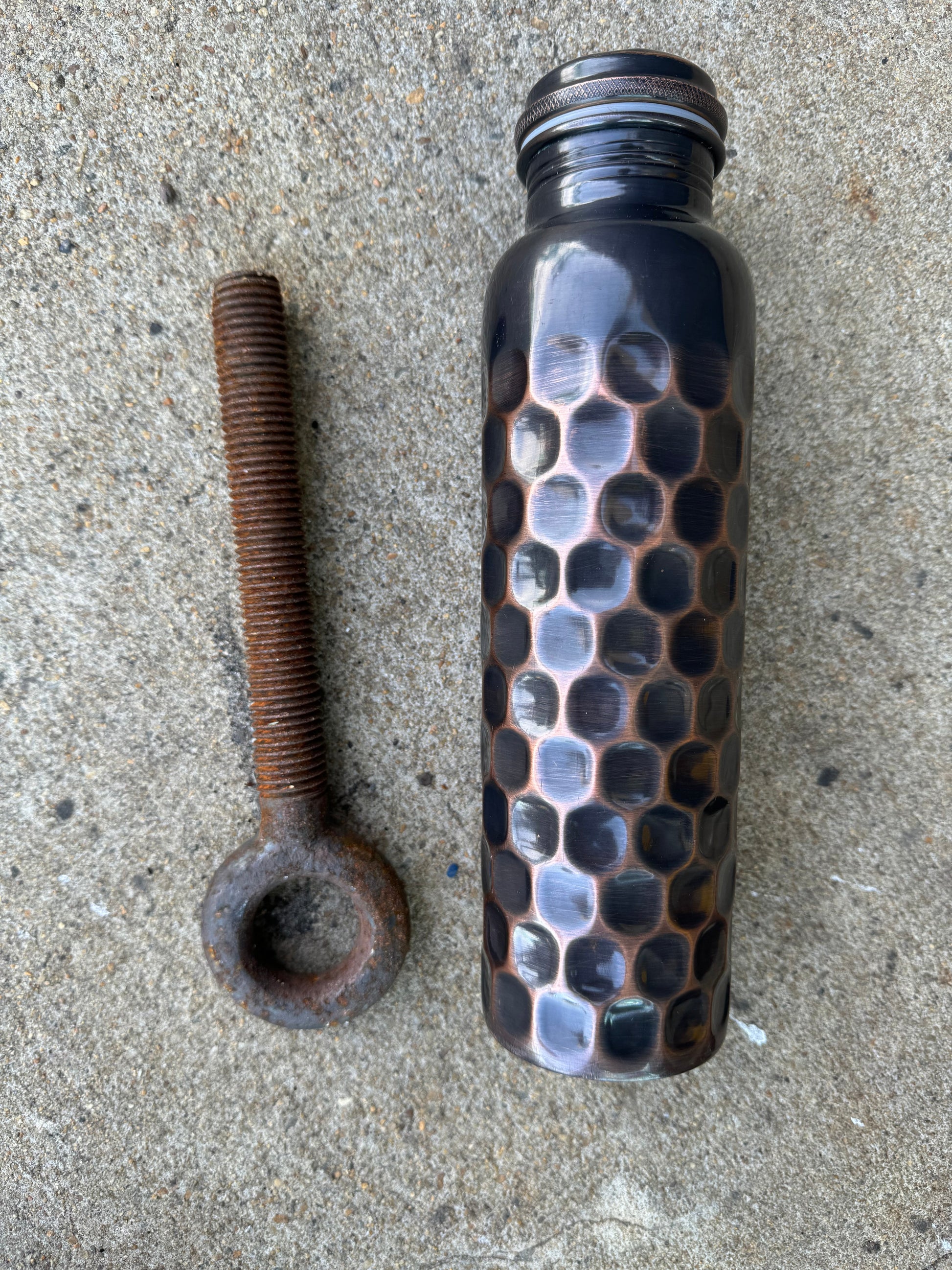 This rugged looking design is great for adventures or work days and looks as hard as you work and play! Reminding us that, often, beautiful things are made in the harshest of conditions! Big glassy waves come from big nasty storms and diamonds are formed under tremendous pressure and temperature. We grow through the struggle, so enjoy the journey!  (Bare copper on the inside will tarnish; remove tarnish as needed per directions on the box and website).  For use with drinking water only!