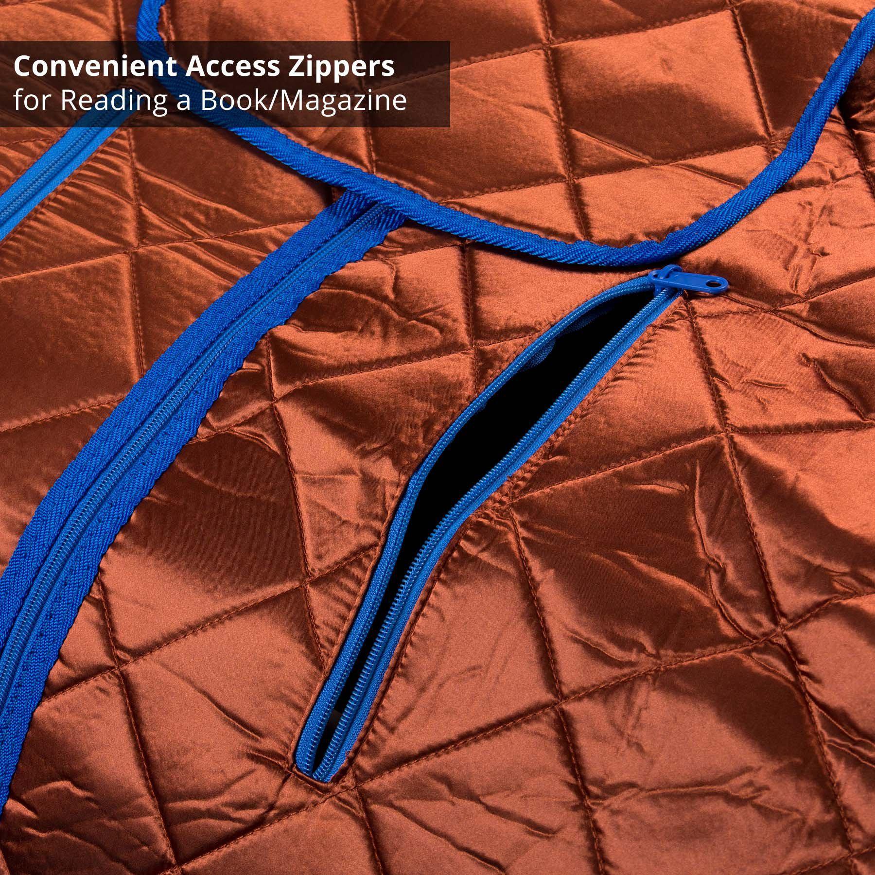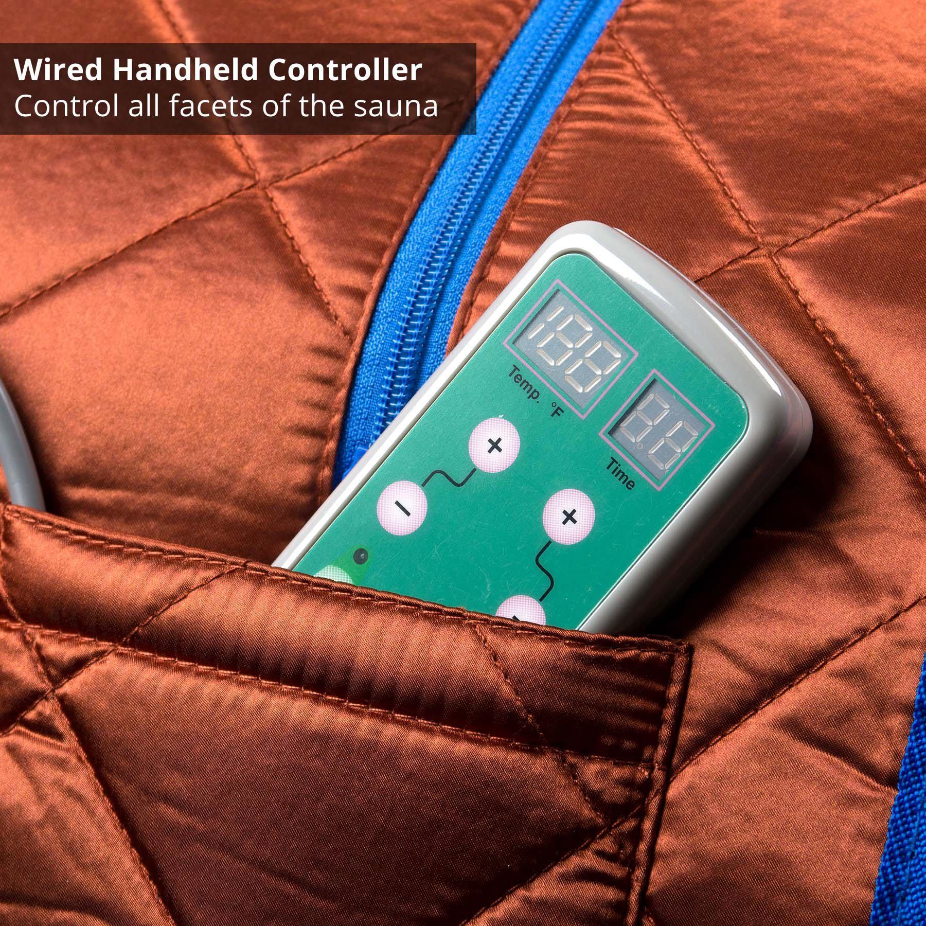 • CHAIR INCLUDED: A foldable sports chair is included with the sauna. It also comes with a washable neck collar, sewn-in pockets for books or devices, a relaxing foot pad, and a convenient, hand-held control.