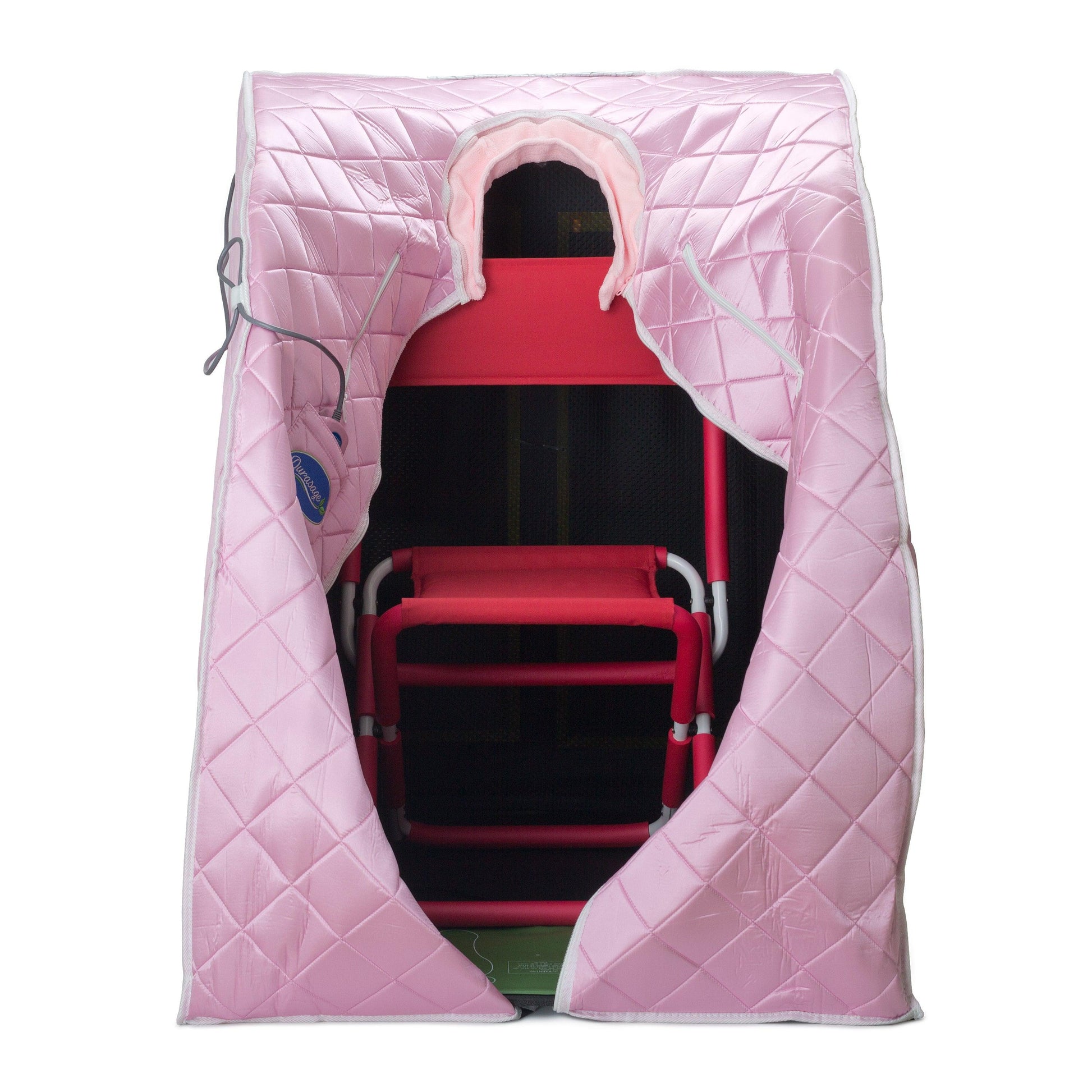 Enjoy our favorite infrared sauna now in PINK! This unique high quality far infrared, fir (Far Infrared) portable sauna with exclusive beneficial features can now be used in the privacy of your home, apartment or any living area without taking up space. Now includes an additional pocket where you can easily access your smartphone, magazine, book or even the TV remote while you are inside the sauna. The larger size (31.5" W x 33" D x 41") is perfect for those who need a little extra room for their legs, while still small enough to be stored when not in use. It only takes a few minutes to unfold and setup.