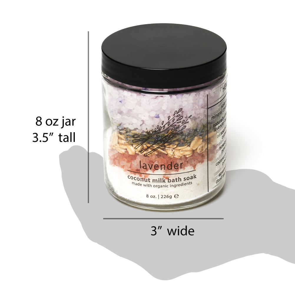 • PURE & SIMPLE VEGAN INGREDIENTS – Made with organic ingredients including coconut milk powder, Dead Sea mineral salt, Epsom salt, Himalayan pink salt, California mineral solar sea salt, organic pressed oats, and flower petals. Each coconut milk bath soak is packaged in a beautiful 8 oz. glass jar.