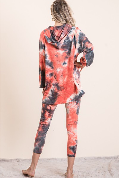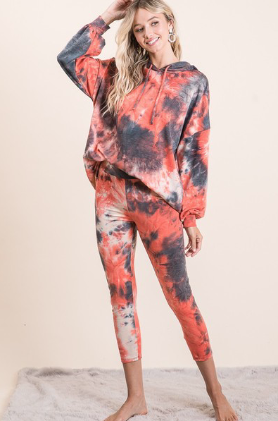 The Liliana is a hooded v-neck with detailed quarter sleeves and a banded hem. The matching bottom also has a banded hem . The material is made in buttery soft stretchy rayon with a blend of spandex fibers and oakley fabric.